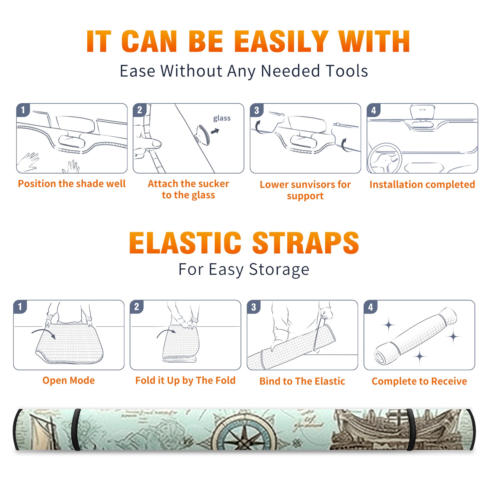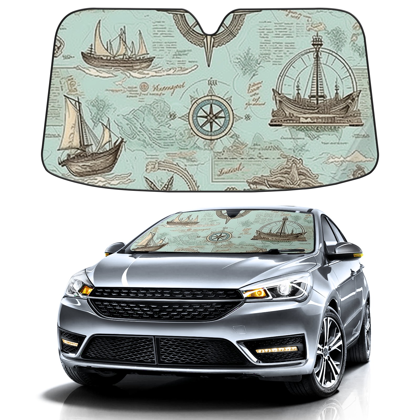 Car Windshield Sun Shade For Front Window Vintage Nautical Wallpaper (4) Foldable Vehicle Windshield Car Sun Visor Covers Automotive Window Protector Car Camping Privacy Sun Blocker