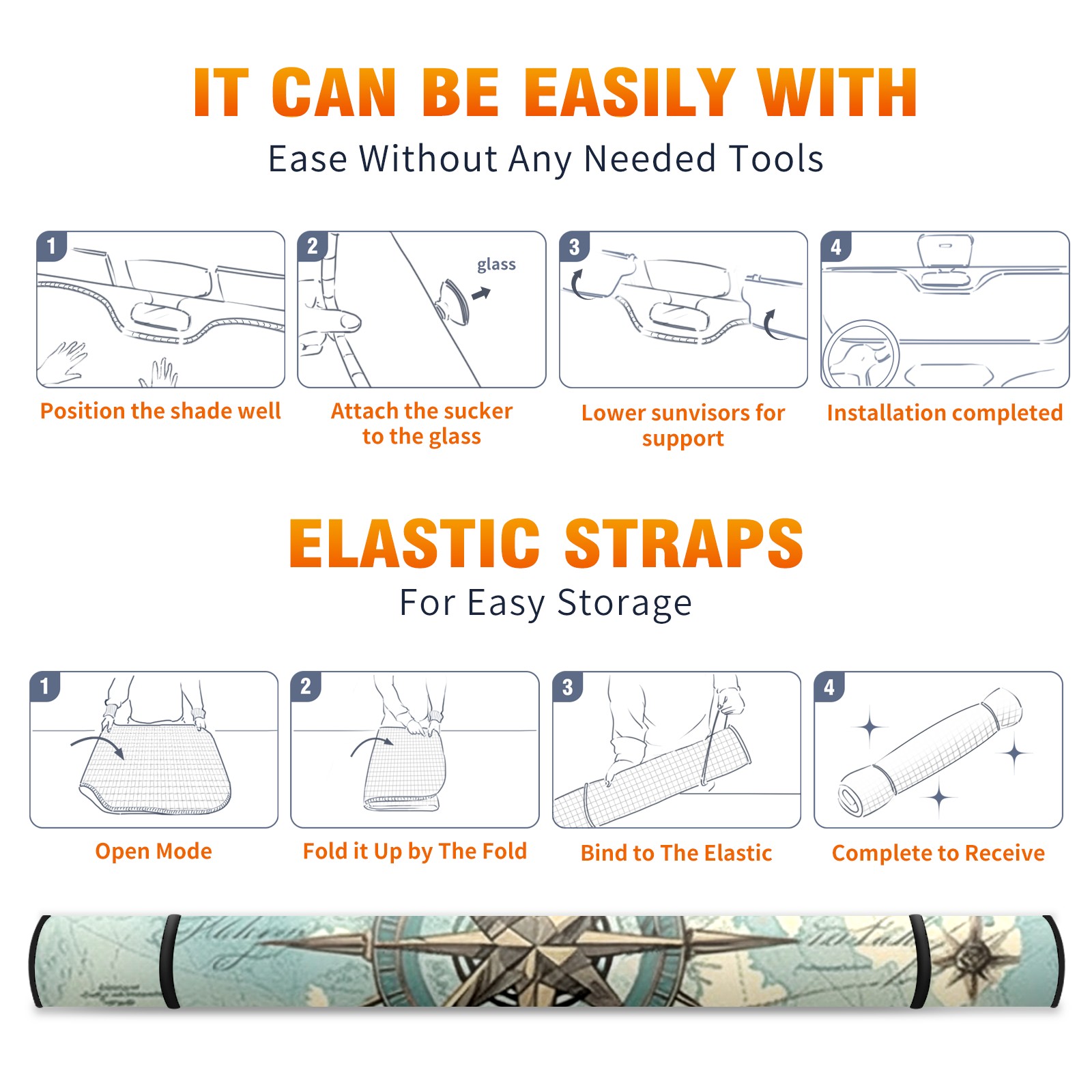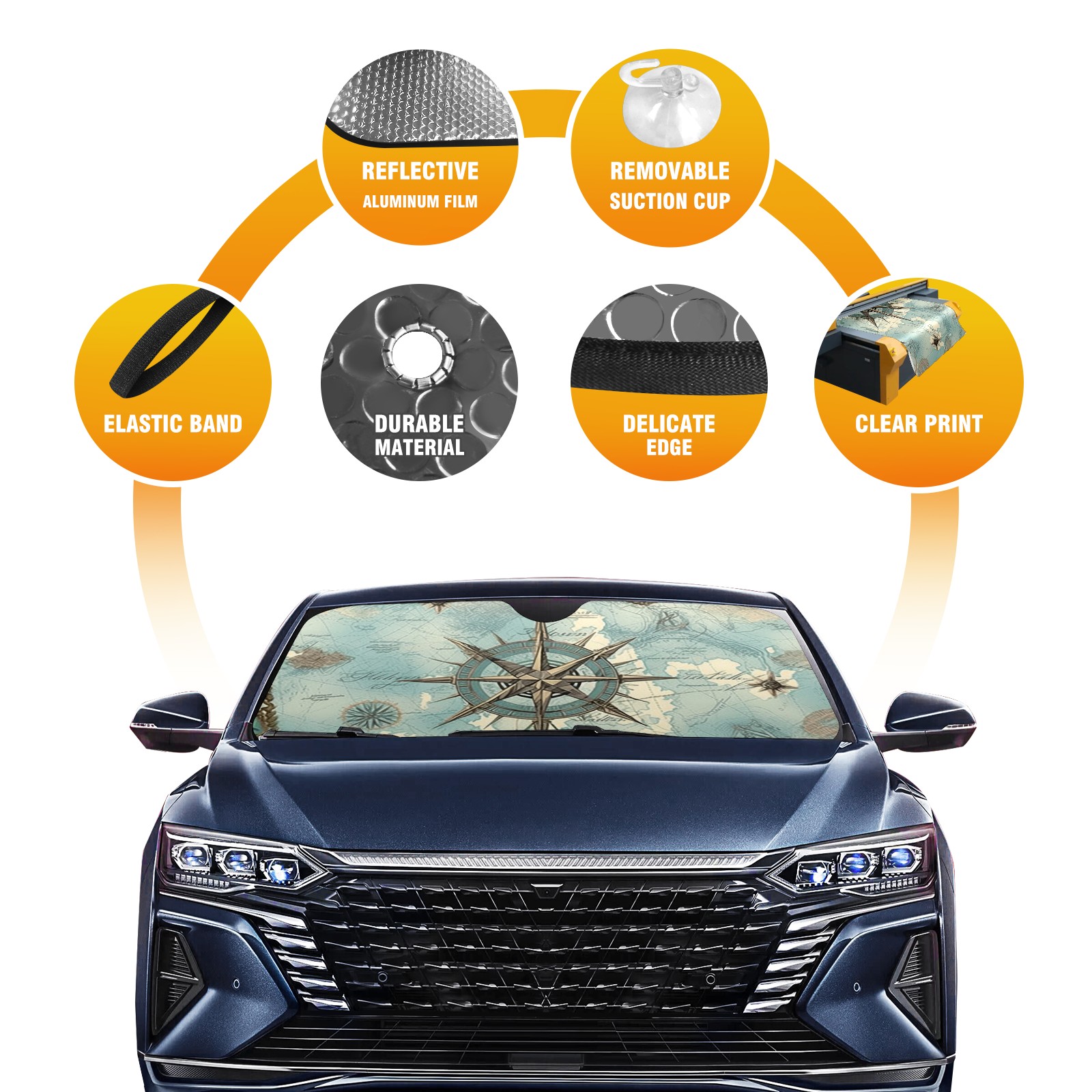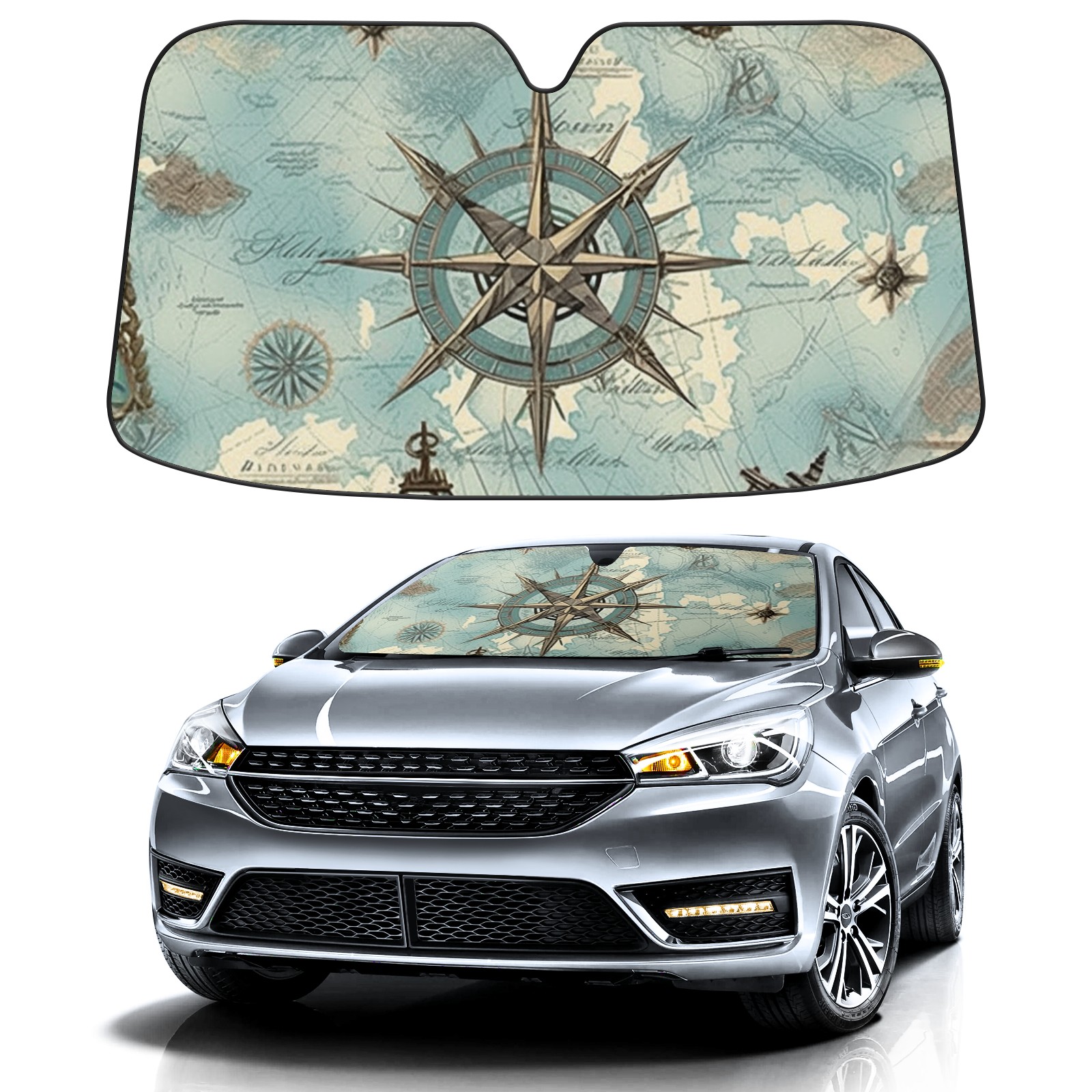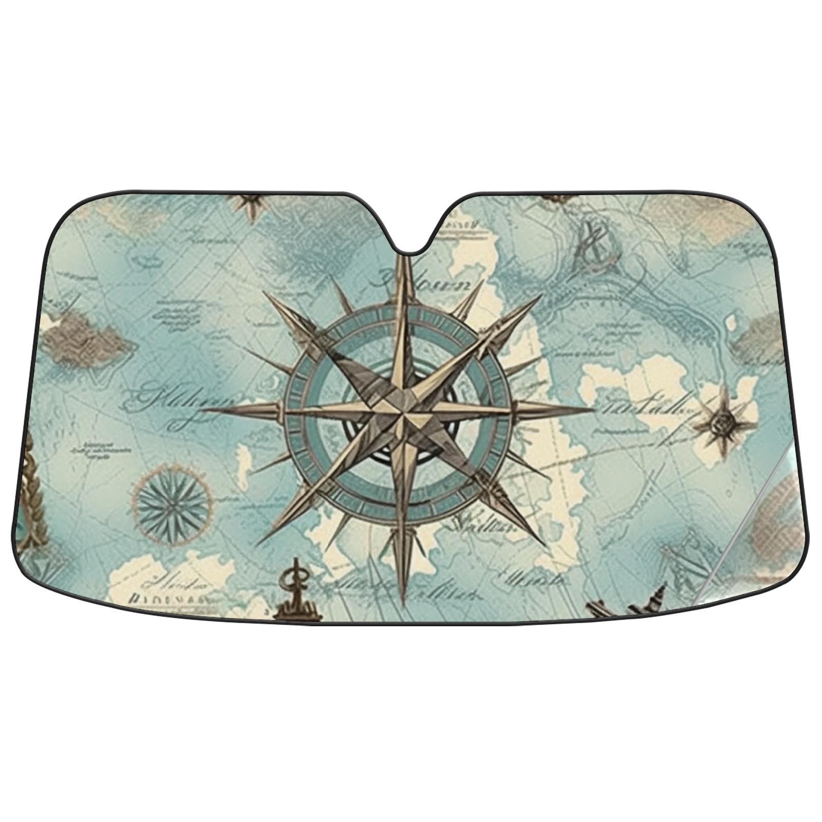 Car Windshield Sun Shade For Front Window Vintage Nautical Wallpaper (1) Foldable Vehicle Windshield Car Sun Visor Covers Automotive Window Protector Car Camping Privacy Sun Blocker