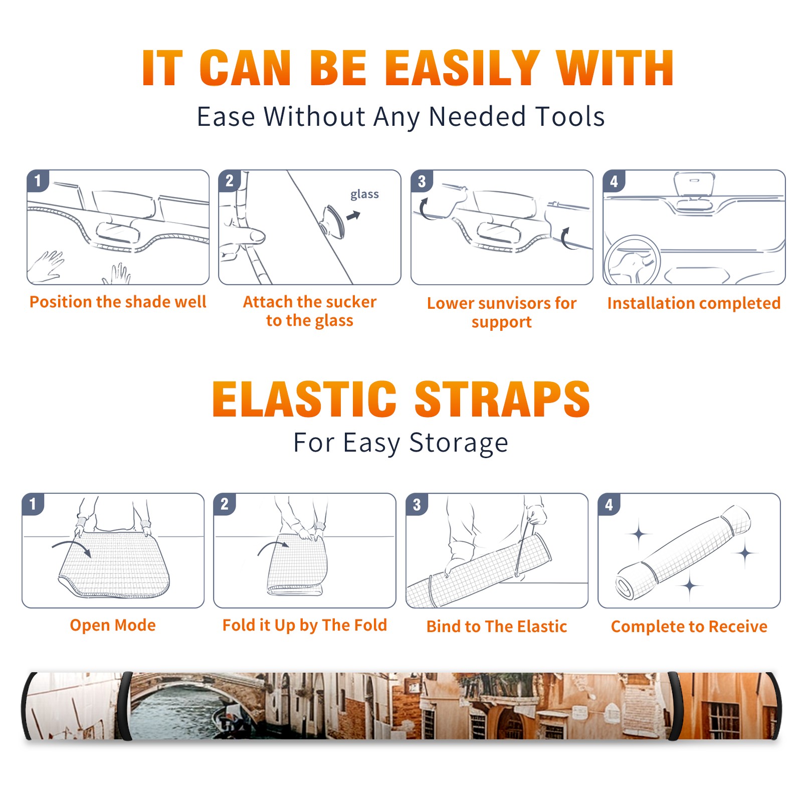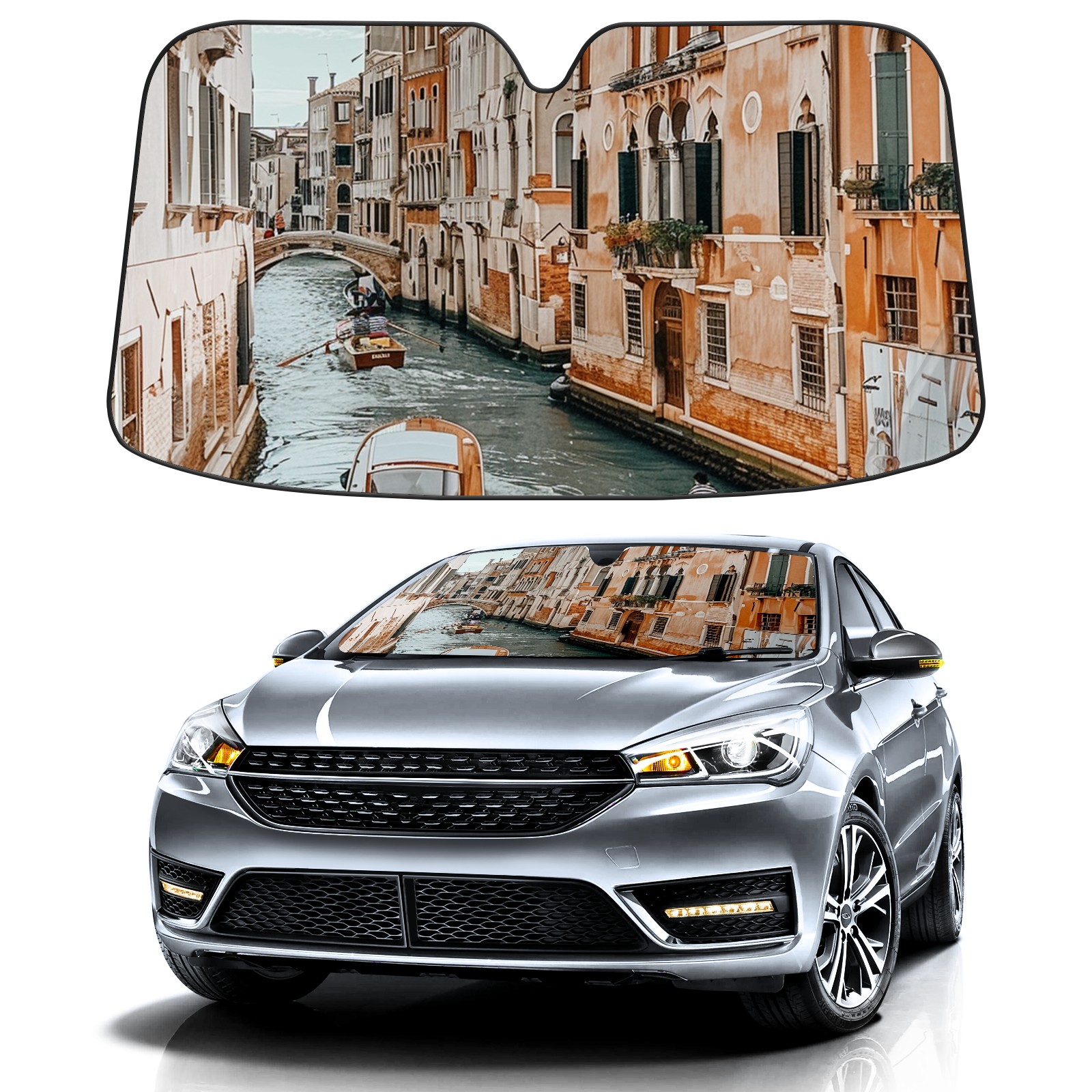 Car Windshield Sun Shade For Front Window Venice Italy Waterways Foldable Vehicle Windshield Car Sun Visor Covers Automotive Window Protector Car Camping Privacy Sun Blocker
