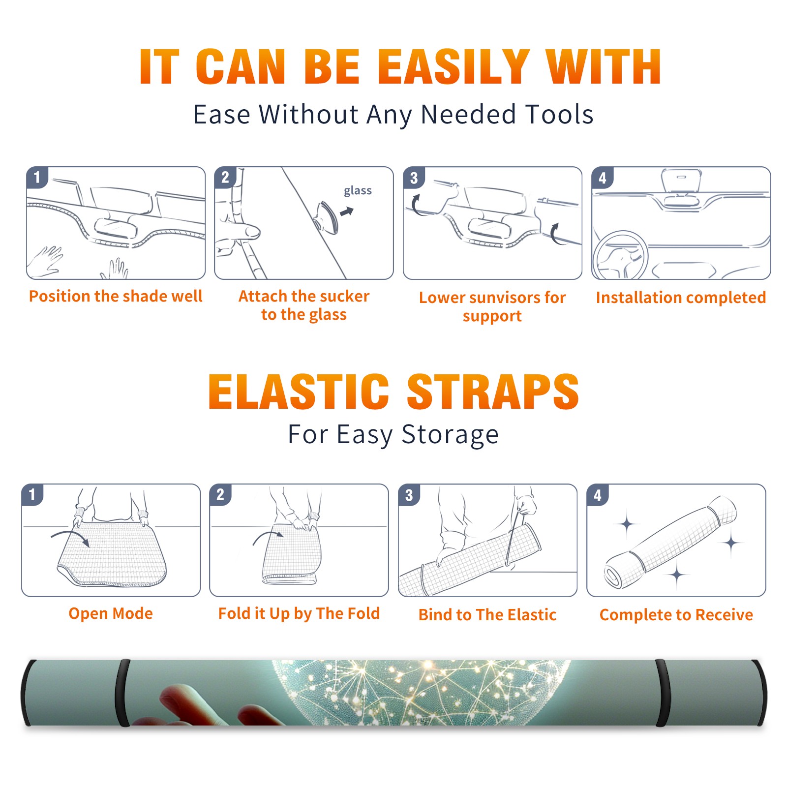 • Diameter /Size 63"L x 33.5"W Made from excellent materials which makes it sturdy and protects the car from the sun. Easy to use and pack. Makes the interior of the car cooler.You can easily stash the sunshade in the storage bag or store long term.It open and closes easy. Also the leather storage bag is durable and easy to put the umbrella back into.This windshield sunshade provides complete coverage and keeps your car interior cool under direct sun. It is easy to open and position under the windshield and around the rear-view mirror. Makes Your Car Easy To Identify, Perfect For Finding Your Car In Crowded Parking Lots And Garages.Great Choice: It Is A Great Gift For Dad, Boyfriend, Brother, Brother And Uncle, Friends, Classmates, Family And So On. Notice: Due To Difference Computer Monitors, The Color Maybe Slightly Different From Picture. As Different Measurement Methods, Measurement Data Will Float Within 2%.I Hope You Understand. If You Have Any Question About The Item Please Do Not Hesitate To Contact Us Immediately And We Will Give You A Satisfactory Reply Within 24 Hours.