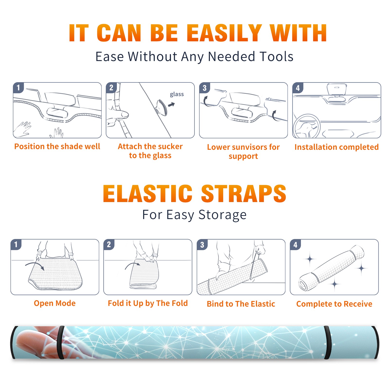 Car Windshield Sun Shade For Front Window Techlogy (4) Foldable Vehicle Windshield Car Sun Visor Covers Automotive Window Protector Car Camping Privacy Sun Blocker