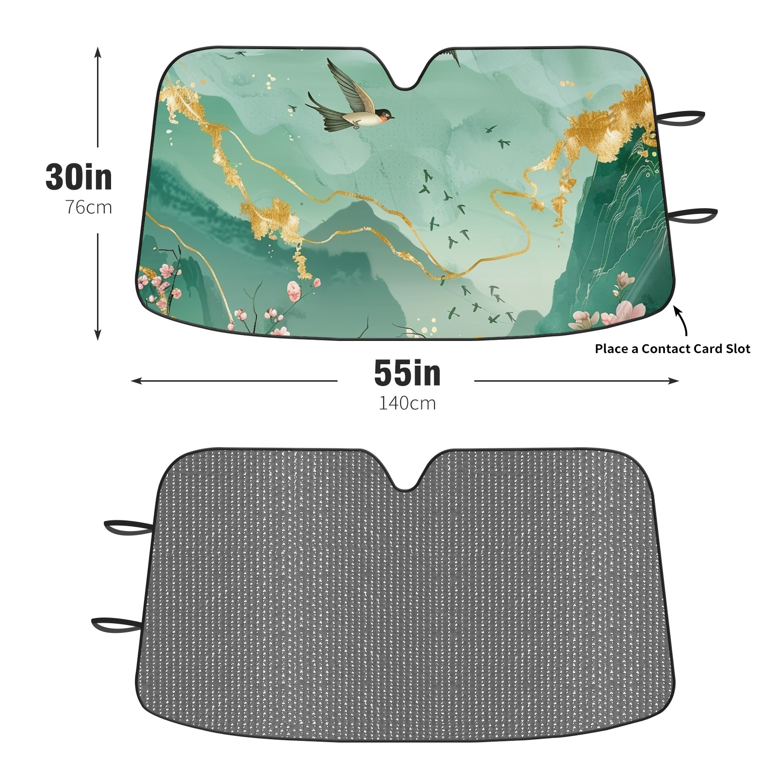 Diameter /Size 63"L x 33.5"W Made from excellent materials which makes it sturdy and protects the car from the sun. Easy to use and pack. Makes the interior of the car cooler.You can easily stash the sunshade in the storage bag or store long term.It open and closes easy. Also the leather storage bag is durable and easy to put the umbrella back into.This windshield sunshade provides complete coverage and keeps your car interior cool under direct sun. It is easy to open and position under the windshield and around the rear-view mirror. Makes Your Car Easy To Identify, Perfect For Finding Your Car In Crowded Parking Lots And Garages.Great Choice: It Is A Great Gift For Dad, Boyfriend, Brother, Brother And Uncle, Friends, Classmates, Family And So On. Notice: Due To Difference Computer Monitors, The Color Maybe Slightly Different From Picture. As Different Measurement Methods, Measurement Data Will Float Within 2%.I Hope You Understand. If You Have Any Question About The Item Please Do Not Hesitate To Contact Us Immediately And We Will Give You A Satisfactory Reply Within 24 Hours.
