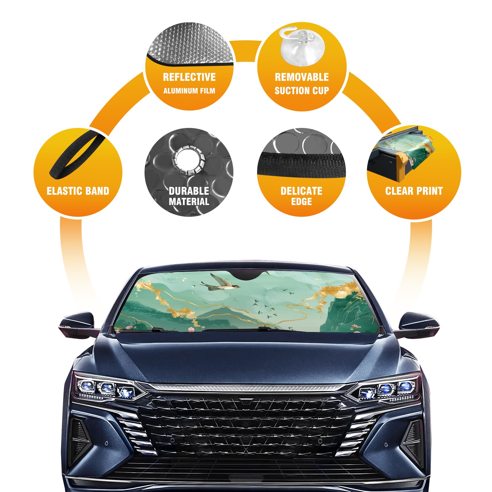 • Diameter /Size 63"L x 33.5"W Made from excellent materials which makes it sturdy and protects the car from the sun. Easy to use and pack. Makes the interior of the car cooler.You can easily stash the sunshade in the storage bag or store long term.It open and closes easy. Also the leather storage bag is durable and easy to put the umbrella back into.This windshield sunshade provides complete coverage and keeps your car interior cool under direct sun. It is easy to open and position under the windshield and around the rear-view mirror. Makes Your Car Easy To Identify, Perfect For Finding Your Car In Crowded Parking Lots And Garages.Great Choice: It Is A Great Gift For Dad, Boyfriend, Brother, Brother And Uncle, Friends, Classmates, Family And So On. Notice: Due To Difference Computer Monitors, The Color Maybe Slightly Different From Picture. As Different Measurement Methods, Measurement Data Will Float Within 2%.I Hope You Understand. If You Have Any Question About The Item Please Do Not Hesitate To Contact Us Immediately And We Will Give You A Satisfactory Reply Within 24 Hours.