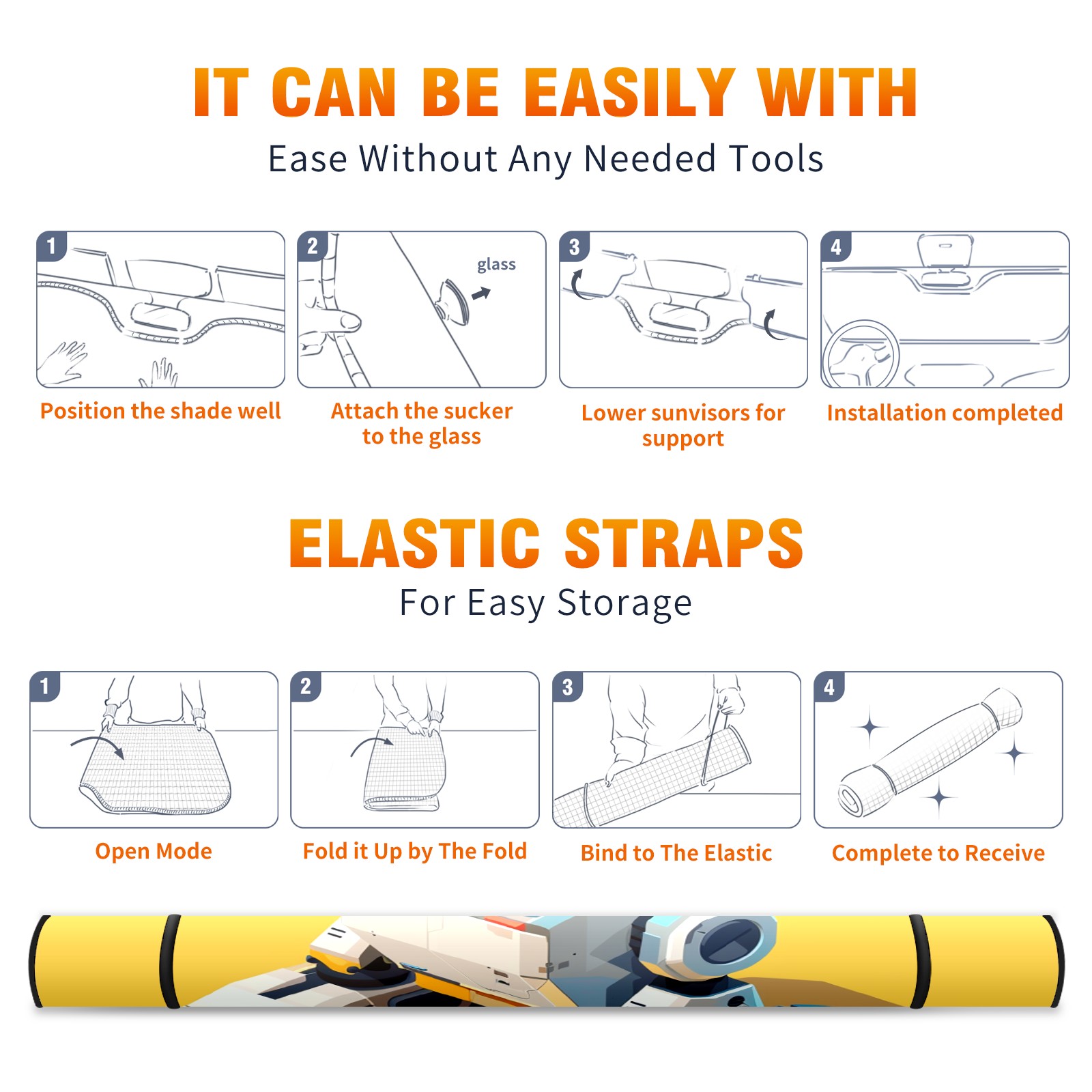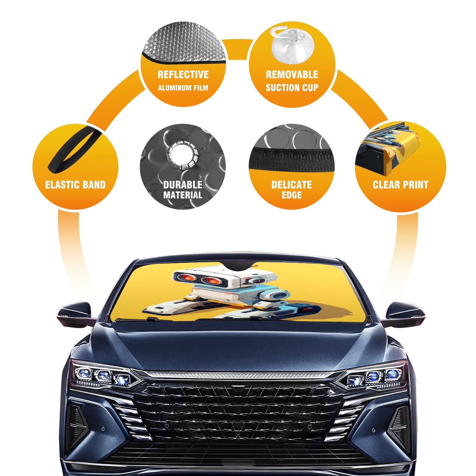 Car Windshield Sun Shade For Front Window Robot (1) Foldable Vehicle Windshield Car Sun Visor Covers Automotive Window Protector Car Camping Privacy Sun Blocker