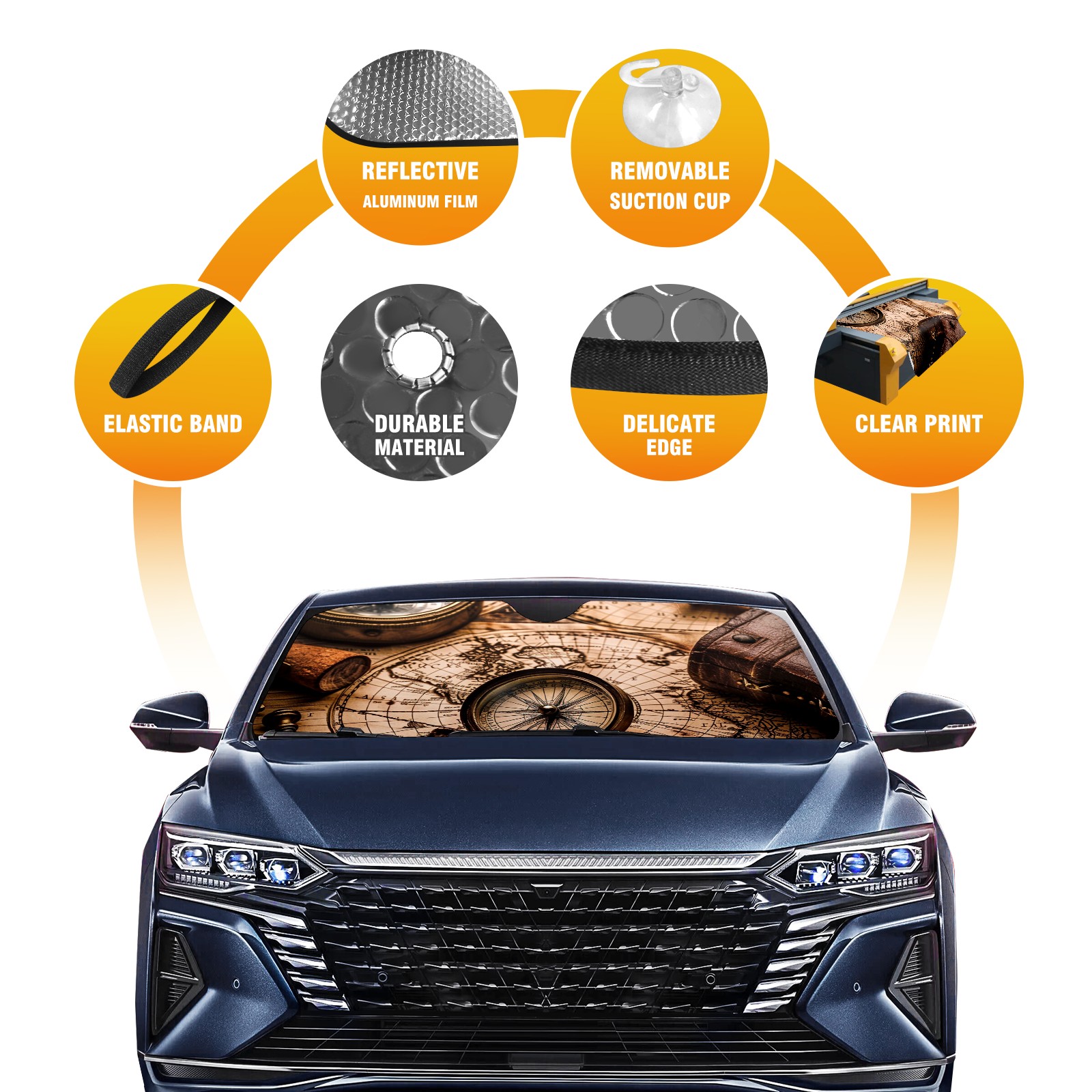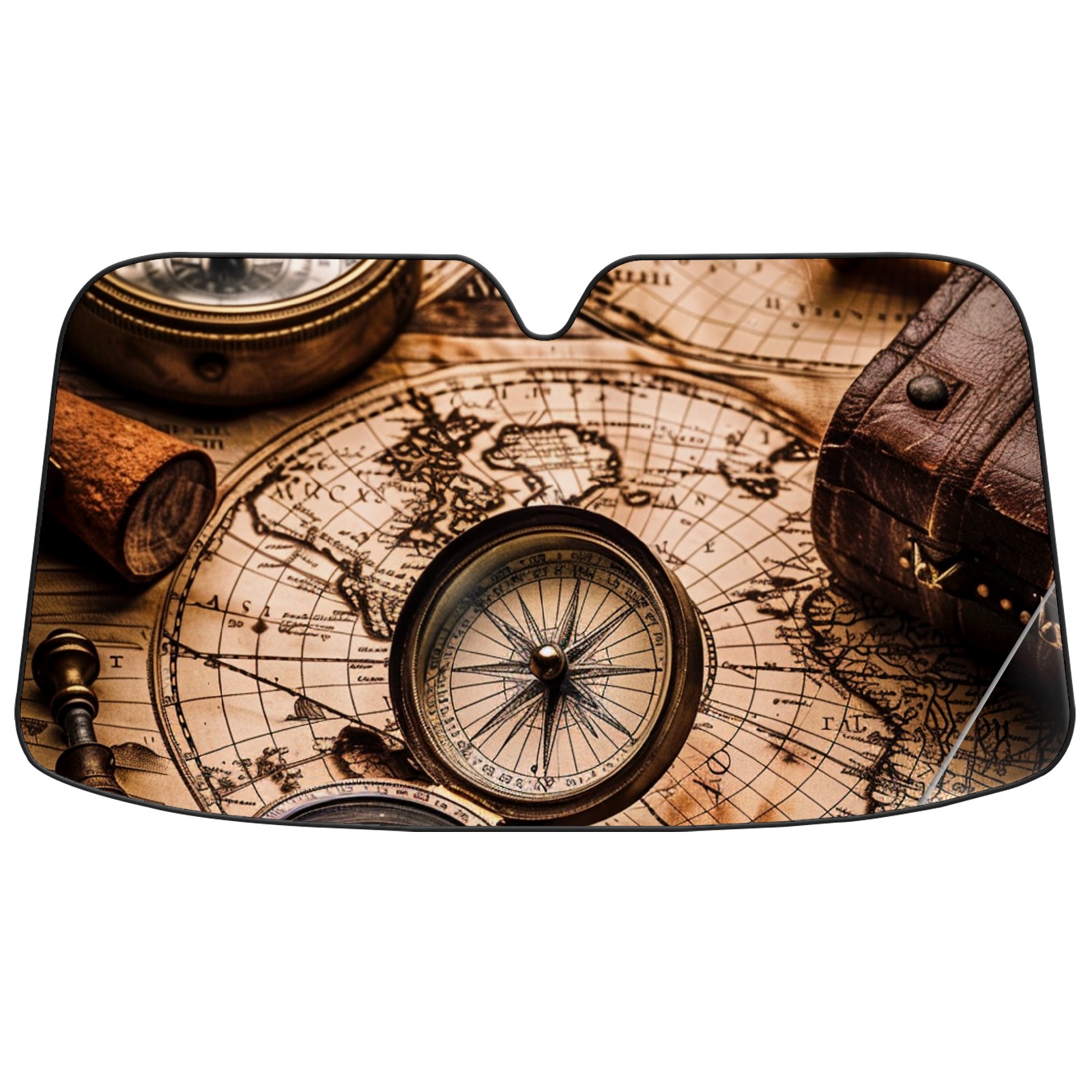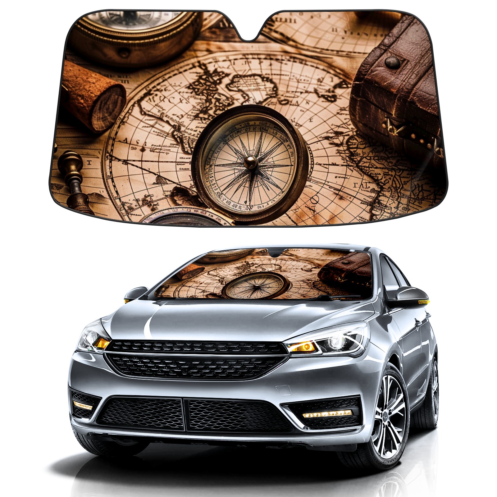 Car Windshield Sun Shade For Front Window Old Map Of The World (5) Foldable Vehicle Windshield Car Sun Visor Covers Automotive Window Protector Car Camping Privacy Sun Blocker