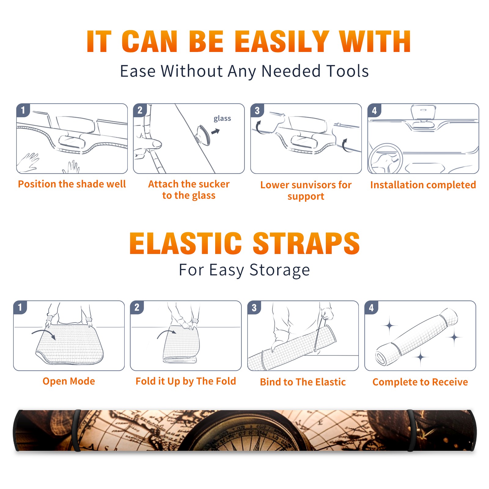 • Diameter /Size 63"L x 33.5"W Made from excellent materials which makes it sturdy and protects the car from the sun. Easy to use and pack. Makes the interior of the car cooler.You can easily stash the sunshade in the storage bag or store long term.It open and closes easy. Also the leather storage bag is durable and easy to put the umbrella back into.This windshield sunshade provides complete coverage and keeps your car interior cool under direct sun. It is easy to open and position under the windshield and around the rear-view mirror. Makes Your Car Easy To Identify, Perfect For Finding Your Car In Crowded Parking Lots And Garages.Great Choice: It Is A Great Gift For Dad, Boyfriend, Brother, Brother And Uncle, Friends, Classmates, Family And So On. Notice: Due To Difference Computer Monitors, The Color Maybe Slightly Different From Picture. As Different Measurement Methods, Measurement Data Will Float Within 2%.I Hope You Understand. If You Have Any Question About The Item Please Do Not Hesitate To Contact Us Immediately And We Will Give You A Satisfactory Reply Within 24 Hours.