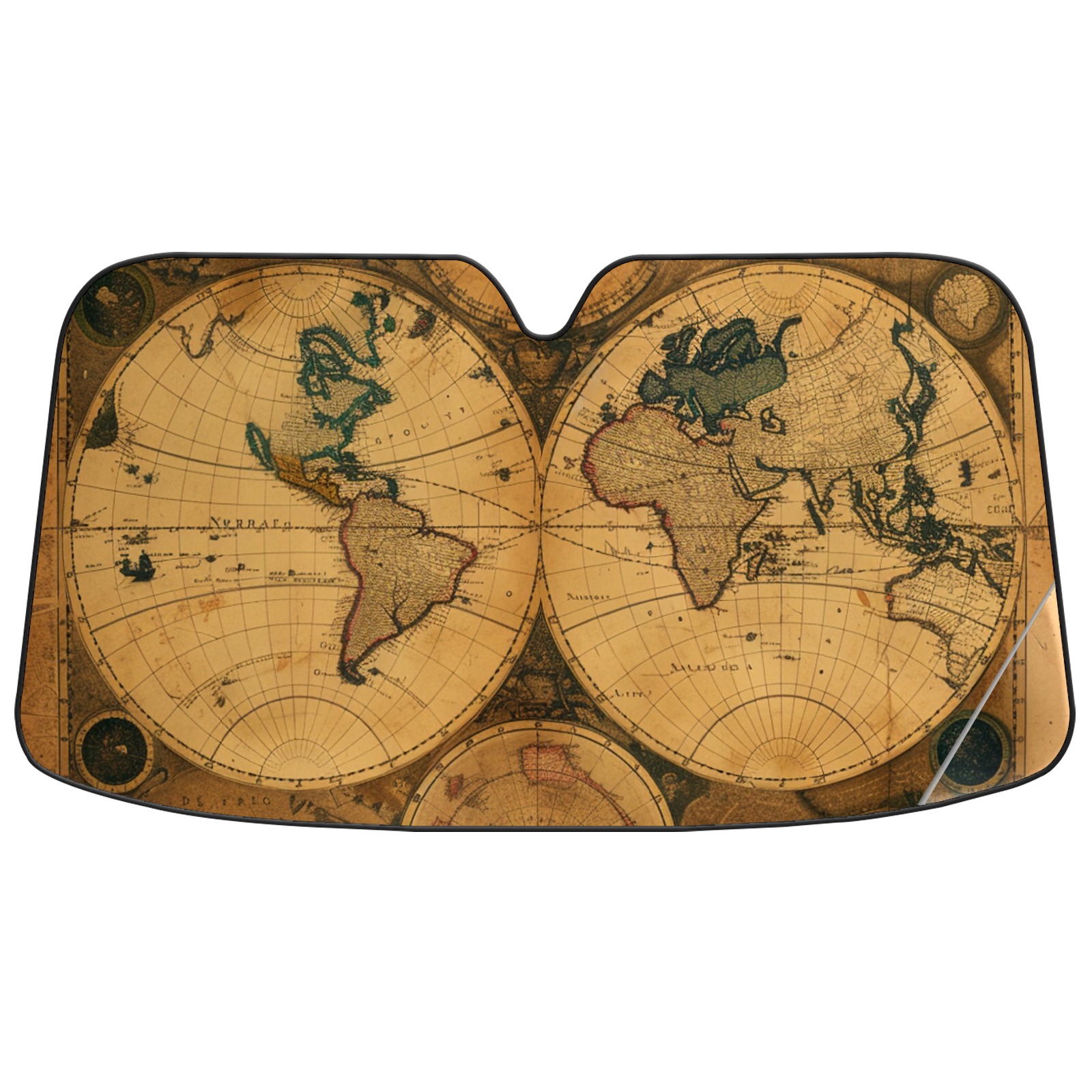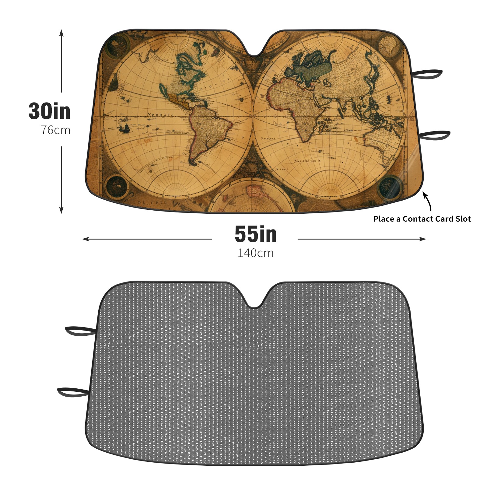 Car Windshield Sun Shade For Front Window Old Map Of The World Foldable Vehicle Windshield Car Sun Visor Covers Automotive Window Protector Car Camping Privacy Sun Blocker
