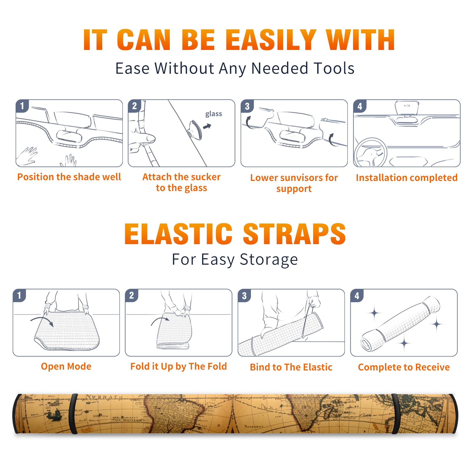 • Diameter /Size 63"L x 33.5"W Made from excellent materials which makes it sturdy and protects the car from the sun. Easy to use and pack. Makes the interior of the car cooler.You can easily stash the sunshade in the storage bag or store long term.It open and closes easy. Also the leather storage bag is durable and easy to put the umbrella back into.This windshield sunshade provides complete coverage and keeps your car interior cool under direct sun. It is easy to open and position under the windshield and around the rear-view mirror. Makes Your Car Easy To Identify, Perfect For Finding Your Car In Crowded Parking Lots And Garages.Great Choice: It Is A Great Gift For Dad, Boyfriend, Brother, Brother And Uncle, Friends, Classmates, Family And So On. Notice: Due To Difference Computer Monitors, The Color Maybe Slightly Different From Picture. As Different Measurement Methods, Measurement Data Will Float Within 2%.I Hope You Understand. If You Have Any Question About The Item Please Do Not Hesitate To Contact Us Immediately And We Will Give You A Satisfactory Reply Within 24 Hours.