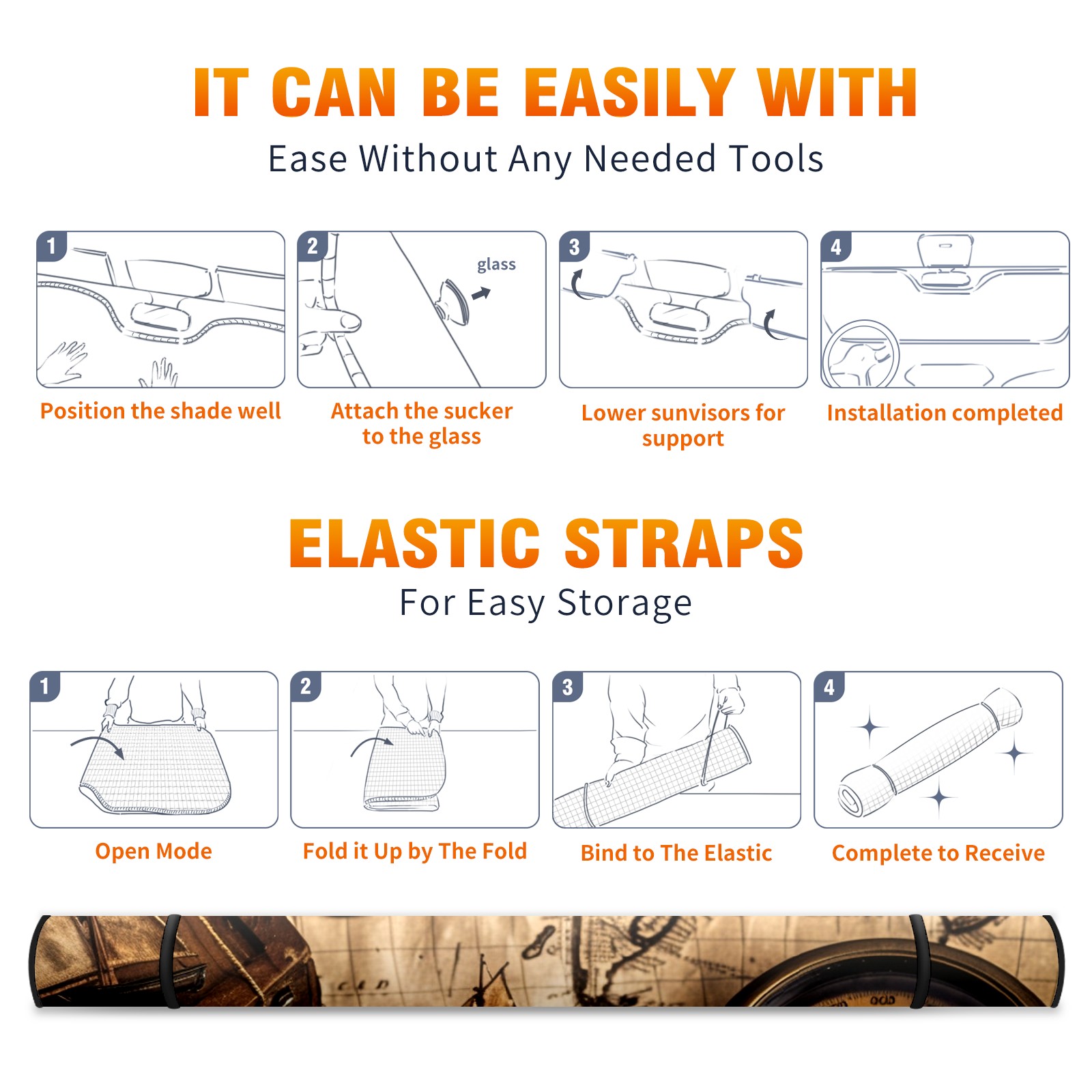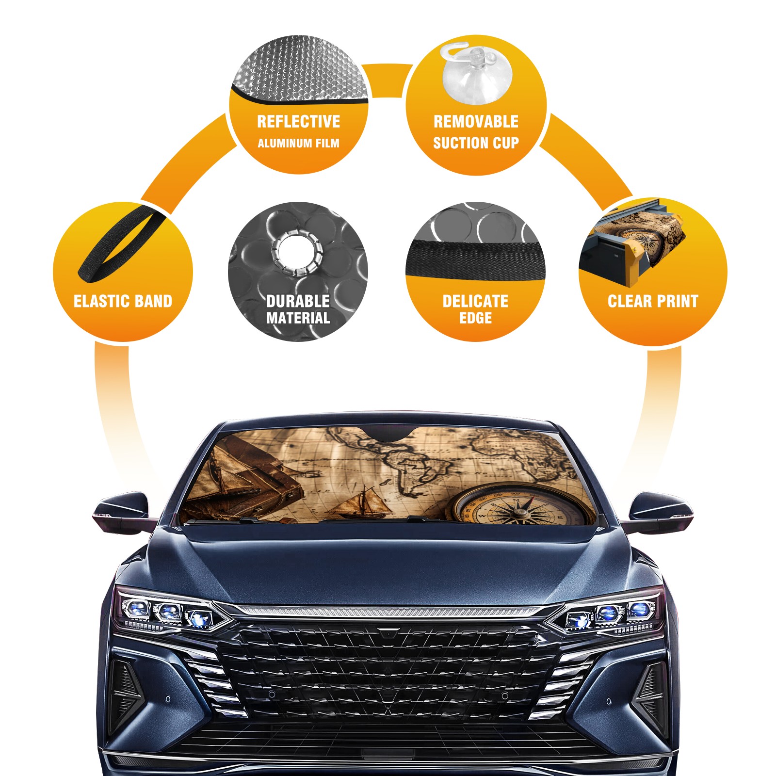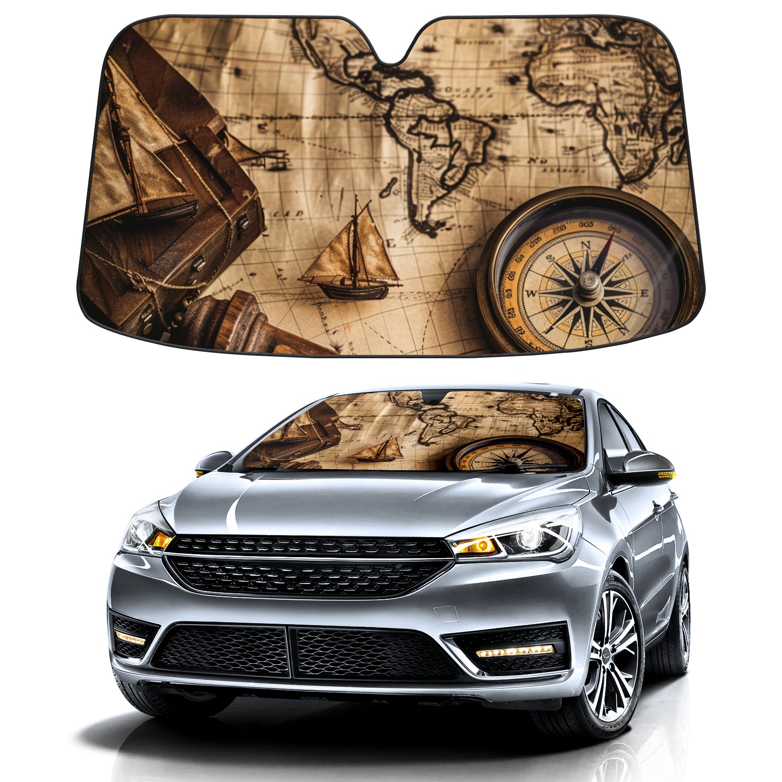 Car Windshield Sun Shade For Front Window Old Map Of The World (4) Foldable Vehicle Windshield Car Sun Visor Covers Automotive Window Protector Car Camping Privacy Sun Blocker