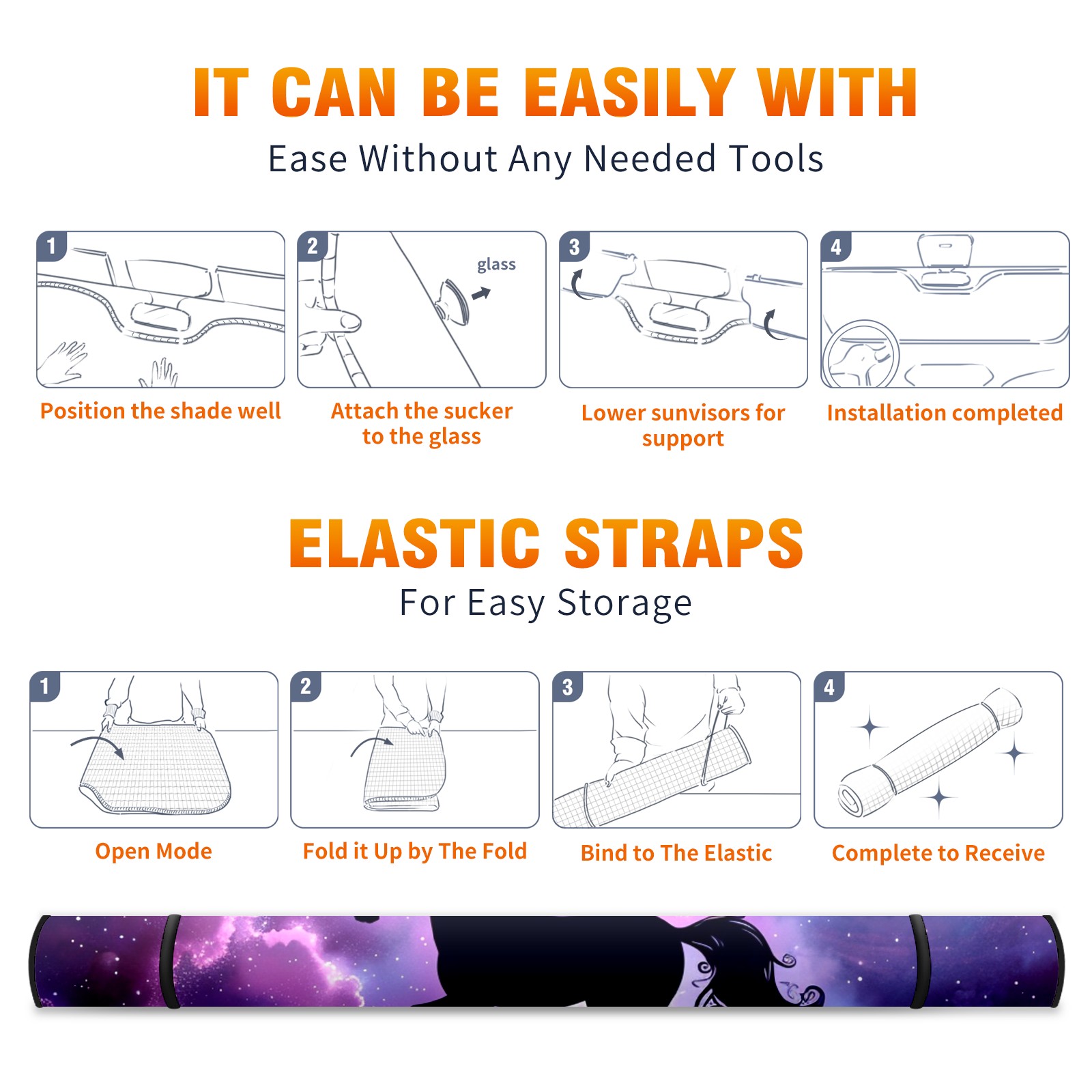 • Diameter /Size 63"L x 33.5"W Made from excellent materials which makes it sturdy and protects the car from the sun. Easy to use and pack. Makes the interior of the car cooler.You can easily stash the sunshade in the storage bag or store long term.It open and closes easy. Also the leather storage bag is durable and easy to put the umbrella back into.This windshield sunshade provides complete coverage and keeps your car interior cool under direct sun. It is easy to open and position under the windshield and around the rear-view mirror. Makes Your Car Easy To Identify, Perfect For Finding Your Car In Crowded Parking Lots And Garages.Great Choice: It Is A Great Gift For Dad, Boyfriend, Brother, Brother And Uncle, Friends, Classmates, Family And So On. Notice: Due To Difference Computer Monitors, The Color Maybe Slightly Different From Picture. As Different Measurement Methods, Measurement Data Will Float Within 2%.I Hope You Understand. If You Have Any Question About The Item Please Do Not Hesitate To Contact Us Immediately And We Will Give You A Satisfactory Reply Within 24 Hours.