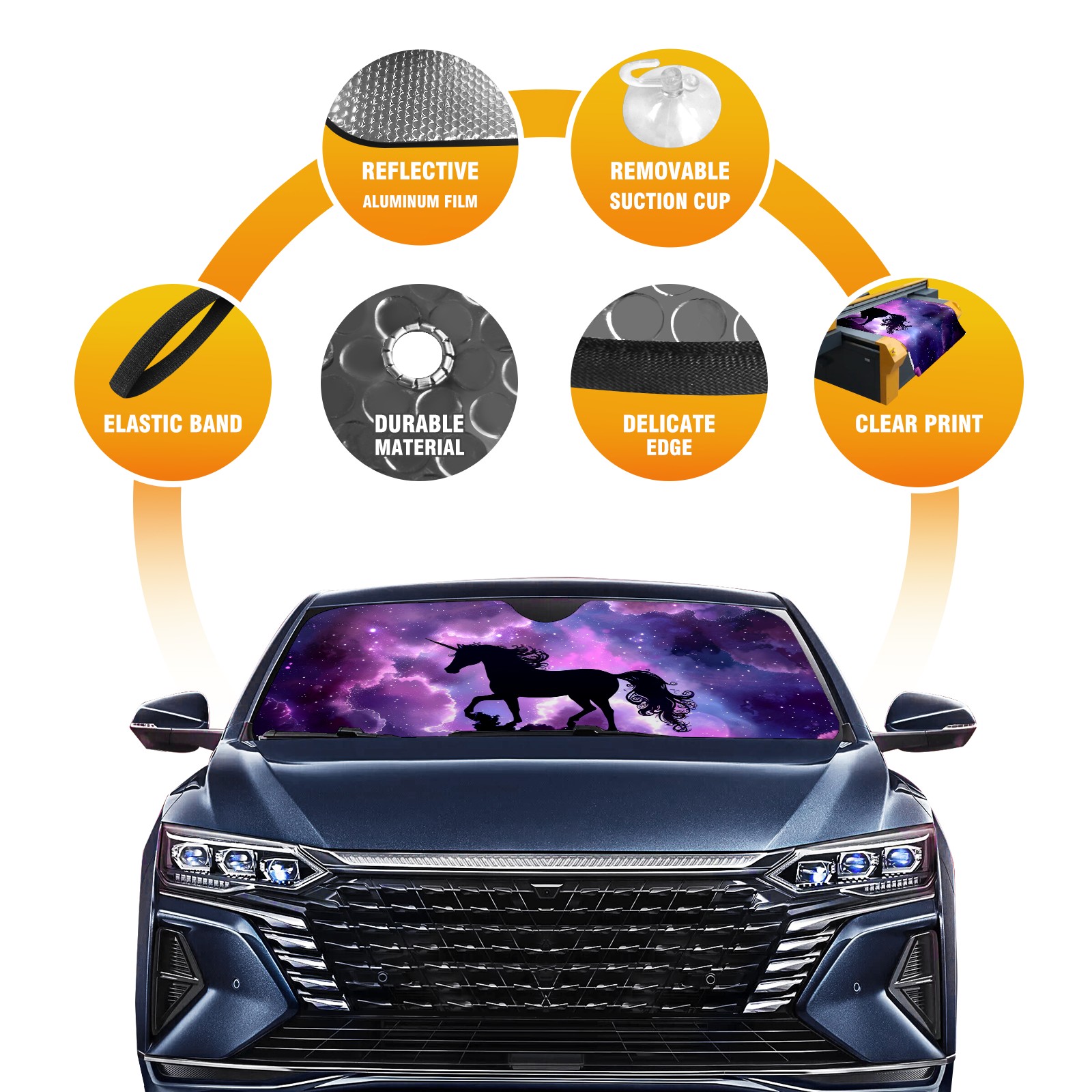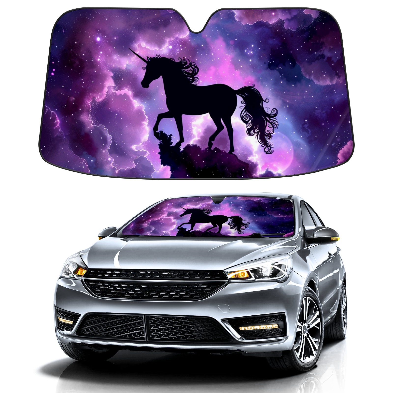 Car Windshield Sun Shade For Front Window Night Sky And Horse (2) Foldable Vehicle Windshield Car Sun Visor Covers Automotive Window Protector Car Camping Privacy Sun Blocker