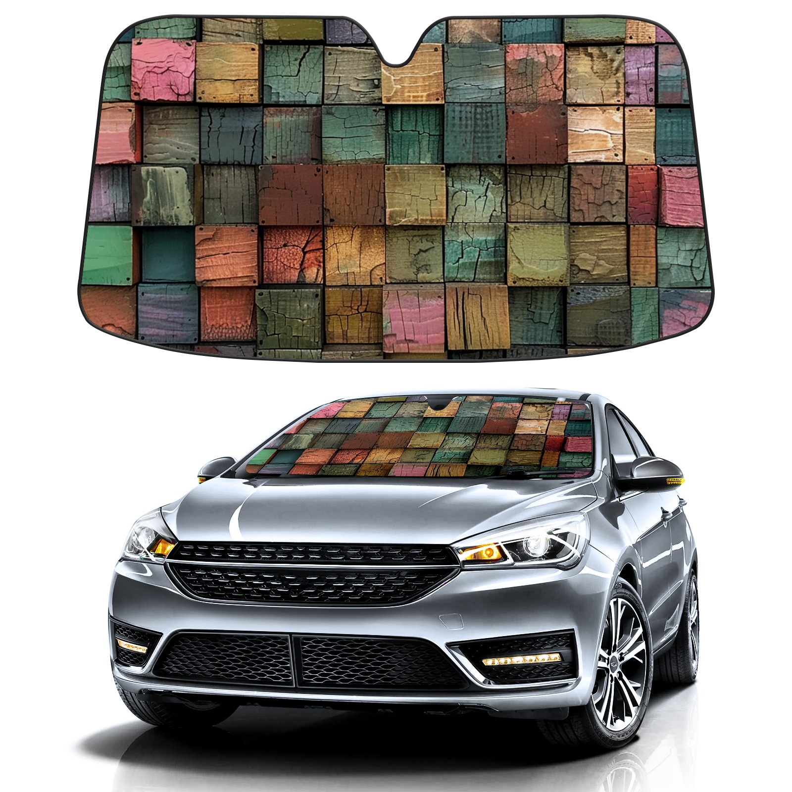 Car Windshield Sun Shade For Front Window Multicolored Square Lattice Foldable Vehicle Windshield Car Sun Visor Covers Automotive Window Protector Car Camping Privacy Sun Blocker