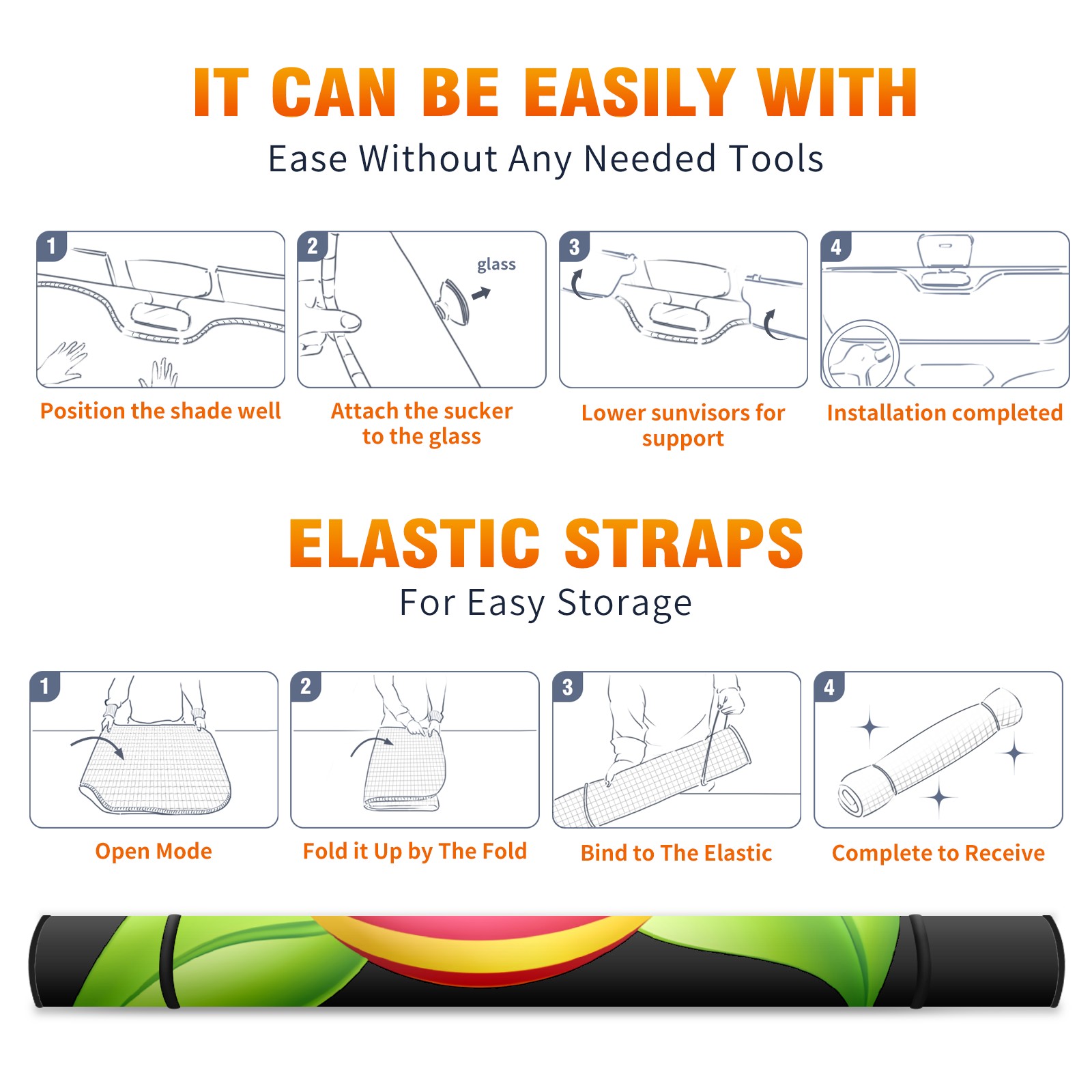 • Diameter /Size 63"L x 33.5"W Made from excellent materials which makes it sturdy and protects the car from the sun. Easy to use and pack. Makes the interior of the car cooler.You can easily stash the sunshade in the storage bag or store long term.It open and closes easy. Also the leather storage bag is durable and easy to put the umbrella back into.This windshield sunshade provides complete coverage and keeps your car interior cool under direct sun. It is easy to open and position under the windshield and around the rear-view mirror. Makes Your Car Easy To Identify, Perfect For Finding Your Car In Crowded Parking Lots And Garages.Great Choice: It Is A Great Gift For Dad, Boyfriend, Brother, Brother And Uncle, Friends, Classmates, Family And So On. Notice: Due To Difference Computer Monitors, The Color Maybe Slightly Different From Picture. As Different Measurement Methods, Measurement Data Will Float Within 2%.I Hope You Understand. If You Have Any Question About The Item Please Do Not Hesitate To Contact Us Immediately And We Will Give You A Satisfactory Reply Within 24 Hours.
