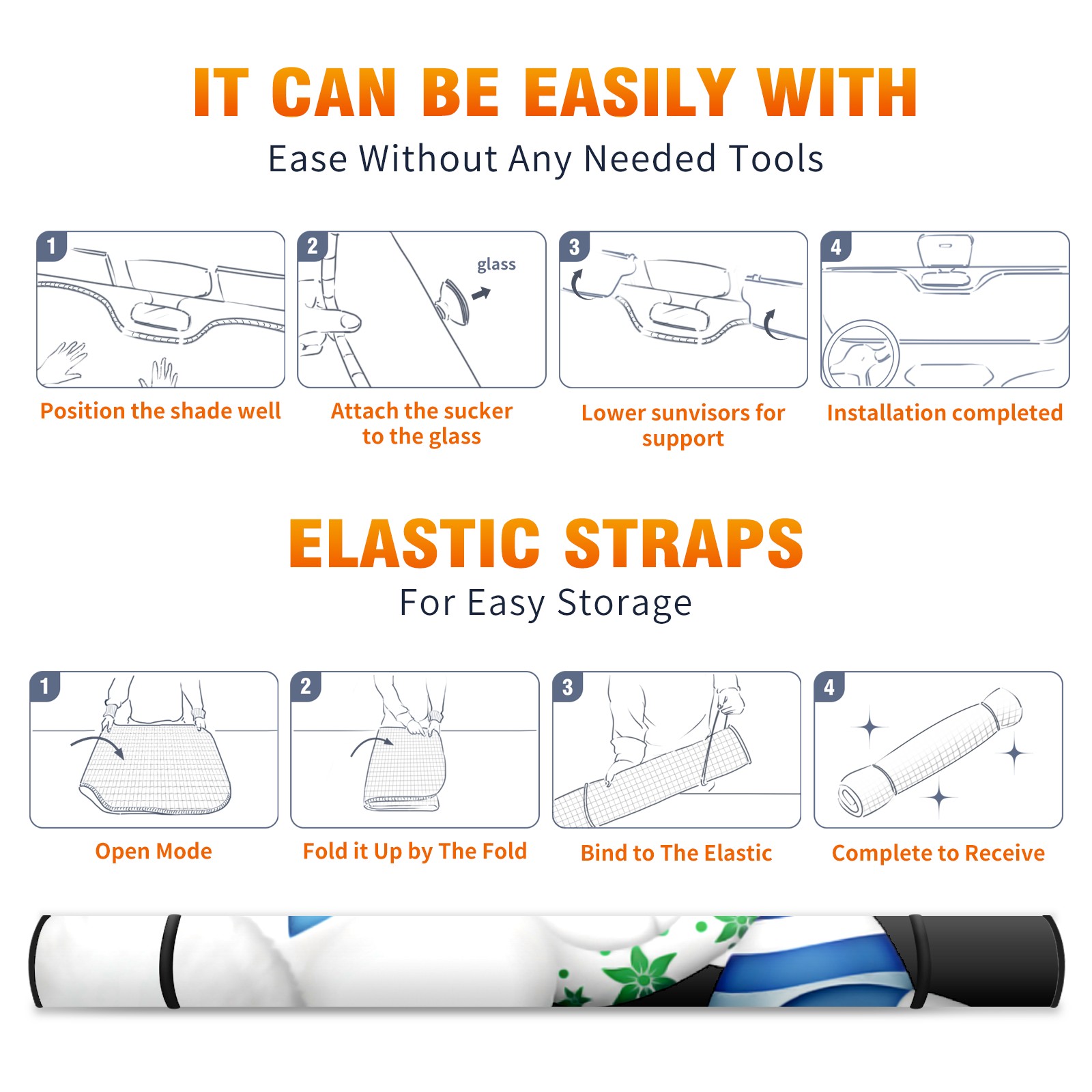 • Diameter /Size 63"L x 33.5"W Made from excellent materials which makes it sturdy and protects the car from the sun. Easy to use and pack. Makes the interior of the car cooler.You can easily stash the sunshade in the storage bag or store long term.It open and closes easy. Also the leather storage bag is durable and easy to put the umbrella back into.This windshield sunshade provides complete coverage and keeps your car interior cool under direct sun. It is easy to open and position under the windshield and around the rear-view mirror. Makes Your Car Easy To Identify, Perfect For Finding Your Car In Crowded Parking Lots And Garages.Great Choice: It Is A Great Gift For Dad, Boyfriend, Brother, Brother And Uncle, Friends, Classmates, Family And So On. Notice: Due To Difference Computer Monitors, The Color Maybe Slightly Different From Picture. As Different Measurement Methods, Measurement Data Will Float Within 2%.I Hope You Understand. If You Have Any Question About The Item Please Do Not Hesitate To Contact Us Immediately And We Will Give You A Satisfactory Reply Within 24 Hours.