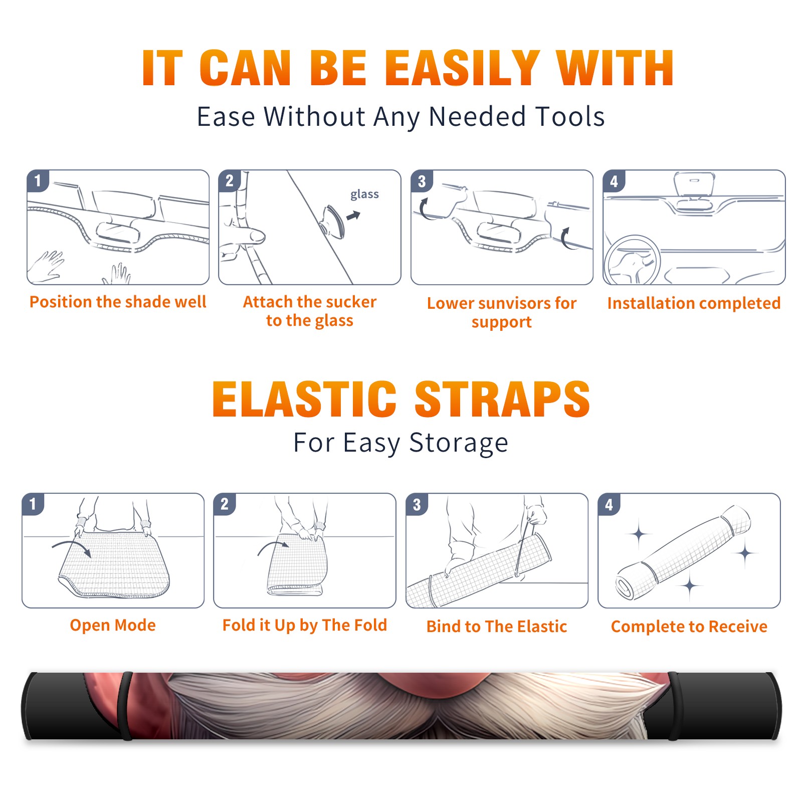 • Diameter /Size 63"L x 33.5"W Made from excellent materials which makes it sturdy and protects the car from the sun. Easy to use and pack. Makes the interior of the car cooler.You can easily stash the sunshade in the storage bag or store long term.It open and closes easy. Also the leather storage bag is durable and easy to put the umbrella back into.This windshield sunshade provides complete coverage and keeps your car interior cool under direct sun. It is easy to open and position under the windshield and around the rear-view mirror. Makes Your Car Easy To Identify, Perfect For Finding Your Car In Crowded Parking Lots And Garages.Great Choice: It Is A Great Gift For Dad, Boyfriend, Brother, Brother And Uncle, Friends, Classmates, Family And So On. Notice: Due To Difference Computer Monitors, The Color Maybe Slightly Different From Picture. As Different Measurement Methods, Measurement Data Will Float Within 2%.I Hope You Understand. If You Have Any Question About The Item Please Do Not Hesitate To Contact Us Immediately And We Will Give You A Satisfactory Reply Within 24 Hours.