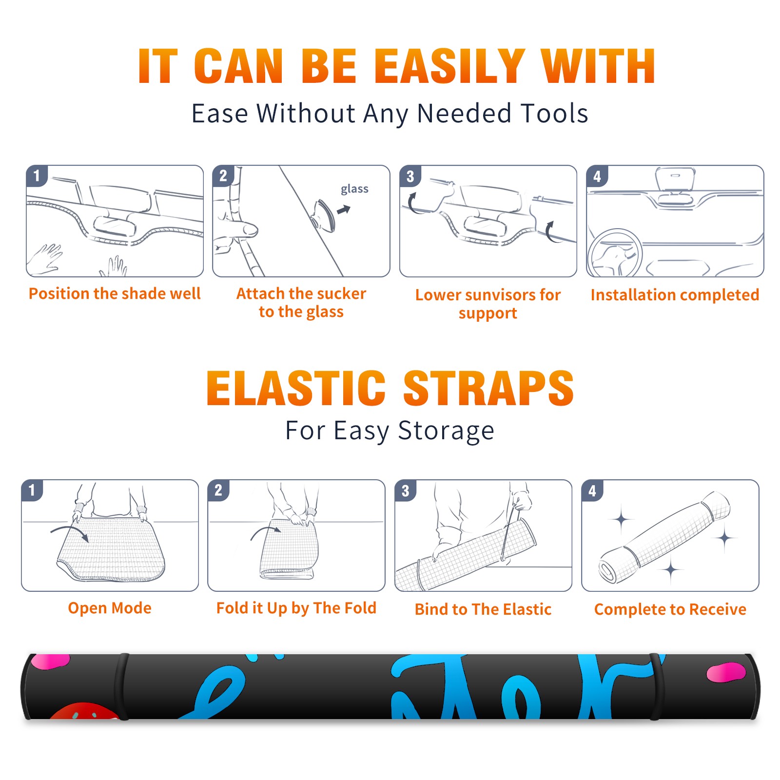 • Diameter /Size 63"L x 33.5"W Made from excellent materials which makes it sturdy and protects the car from the sun. Easy to use and pack. Makes the interior of the car cooler.You can easily stash the sunshade in the storage bag or store long term.It open and closes easy. Also the leather storage bag is durable and easy to put the umbrella back into.This windshield sunshade provides complete coverage and keeps your car interior cool under direct sun. It is easy to open and position under the windshield and around the rear-view mirror. Makes Your Car Easy To Identify, Perfect For Finding Your Car In Crowded Parking Lots And Garages.Great Choice: It Is A Great Gift For Dad, Boyfriend, Brother, Brother And Uncle, Friends, Classmates, Family And So On. Notice: Due To Difference Computer Monitors, The Color Maybe Slightly Different From Picture. As Different Measurement Methods, Measurement Data Will Float Within 2%.I Hope You Understand. If You Have Any Question About The Item Please Do Not Hesitate To Contact Us Immediately And We Will Give You A Satisfactory Reply Within 24 Hours.