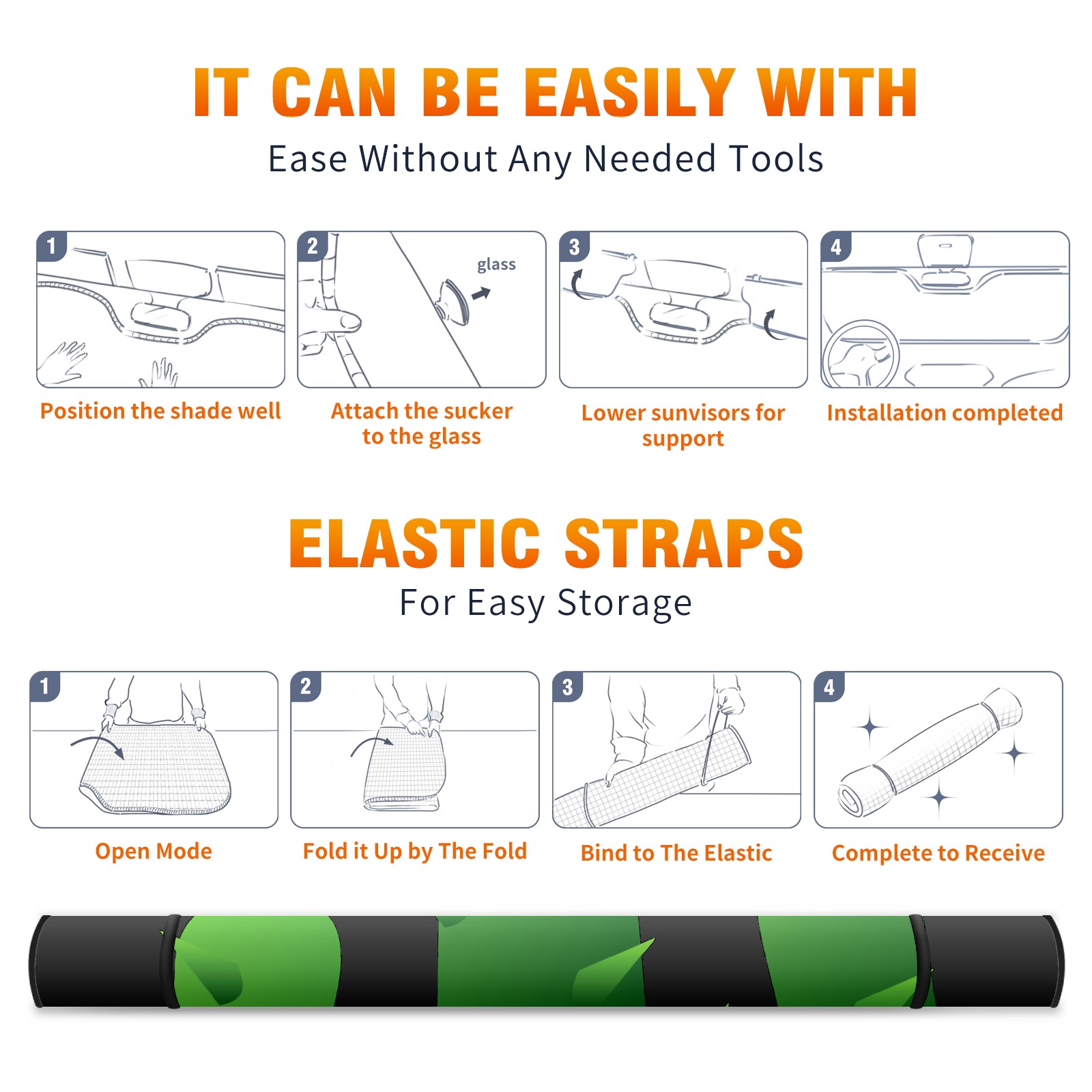 • Diameter /Size 63"L x 33.5"W Made from excellent materials which makes it sturdy and protects the car from the sun. Easy to use and pack. Makes the interior of the car cooler.You can easily stash the sunshade in the storage bag or store long term.It open and closes easy. Also the leather storage bag is durable and easy to put the umbrella back into.This windshield sunshade provides complete coverage and keeps your car interior cool under direct sun. It is easy to open and position under the windshield and around the rear-view mirror. Makes Your Car Easy To Identify, Perfect For Finding Your Car In Crowded Parking Lots And Garages.Great Choice: It Is A Great Gift For Dad, Boyfriend, Brother, Brother And Uncle, Friends, Classmates, Family And So On. Notice: Due To Difference Computer Monitors, The Color Maybe Slightly Different From Picture. As Different Measurement Methods, Measurement Data Will Float Within 2%.I Hope You Understand. If You Have Any Question About The Item Please Do Not Hesitate To Contact Us Immediately And We Will Give You A Satisfactory Reply Within 24 Hours.