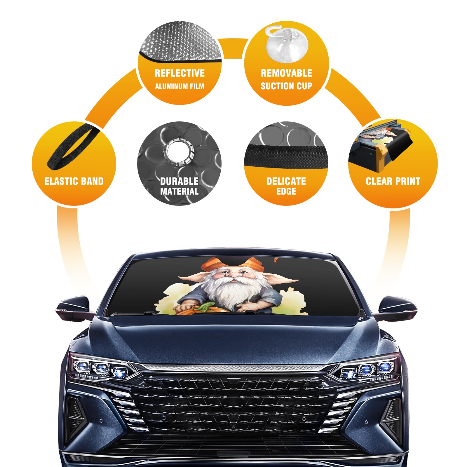 Diameter /Size 63"L x 33.5"W Made from excellent materials which makes it sturdy and protects the car from the sun. Easy to use and pack. Makes the interior of the car cooler.You can easily stash the sunshade in the storage bag or store long term.It open and closes easy. Also the leather storage bag is durable and easy to put the umbrella back into.This windshield sunshade provides complete coverage and keeps your car interior cool under direct sun. It is easy to open and position under the windshield and around the rear-view mirror. Makes Your Car Easy To Identify, Perfect For Finding Your Car In Crowded Parking Lots And Garages.Great Choice: It Is A Great Gift For Dad, Boyfriend, Brother, Brother And Uncle, Friends, Classmates, Family And So On. Notice: Due To Difference Computer Monitors, The Color Maybe Slightly Different From Picture. As Different Measurement Methods, Measurement Data Will Float Within 2%.I Hope You Understand. If You Have Any Question About The Item Please Do Not Hesitate To Contact Us Immediately And We Will Give You A Satisfactory Reply Within 24 Hours.