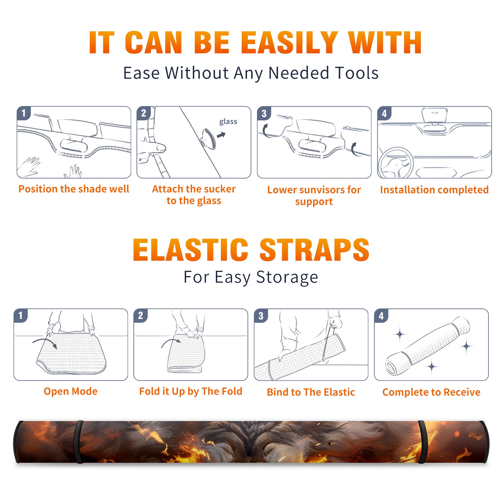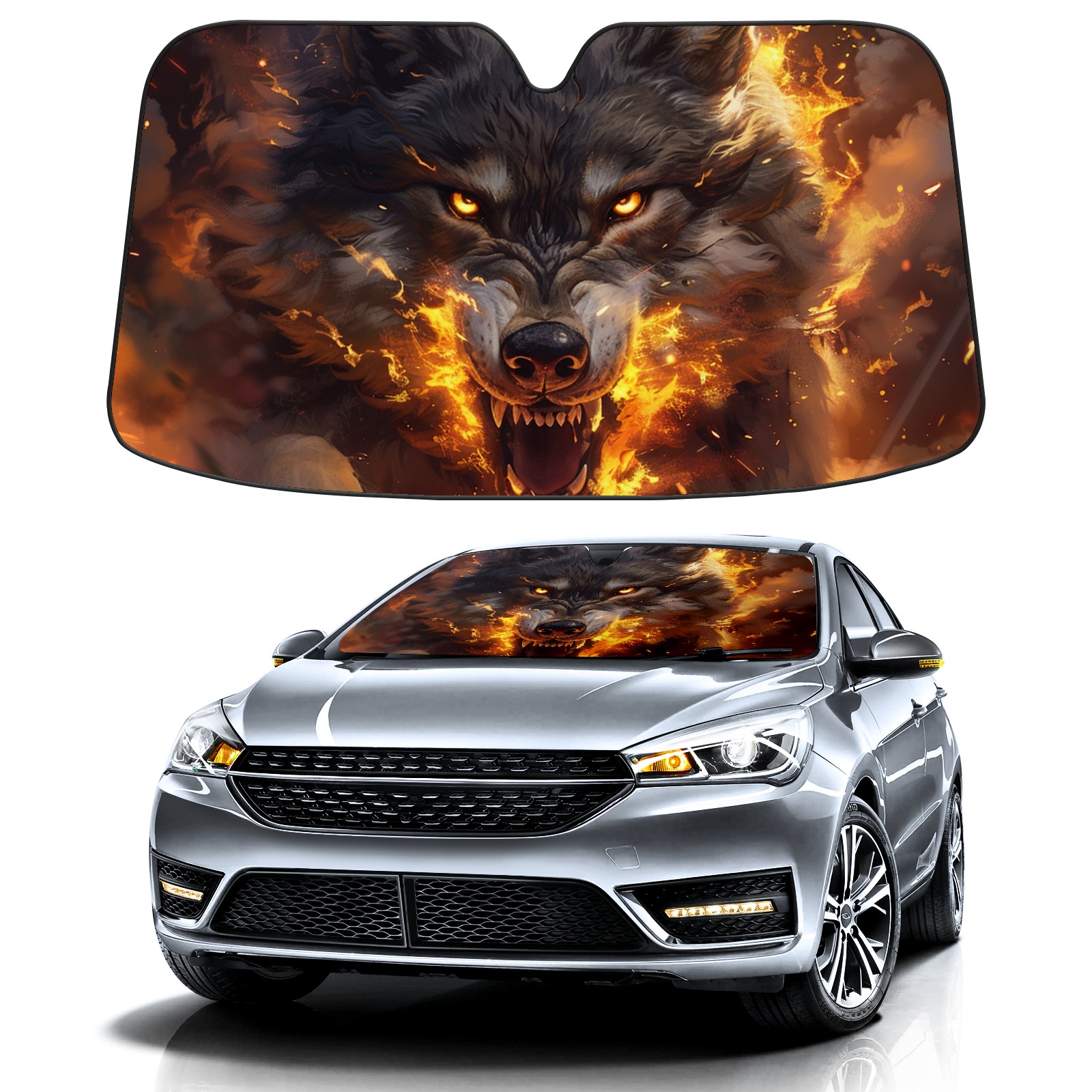 Car Windshield Sun Shade For Front Window Wolf (2) Foldable Vehicle Windshield Car Sun Visor Covers Automotive Window Protector Car Camping Privacy Sun Blocker