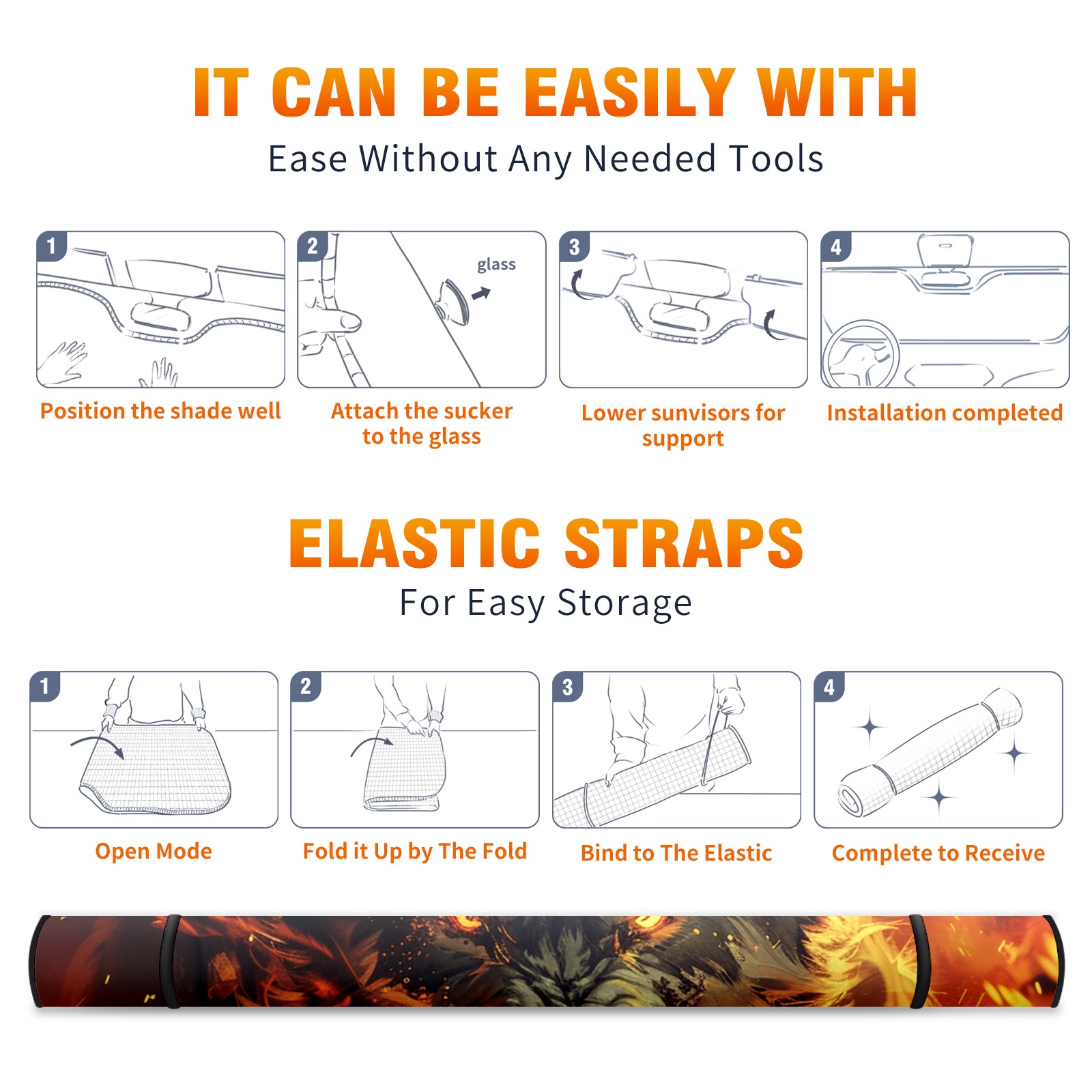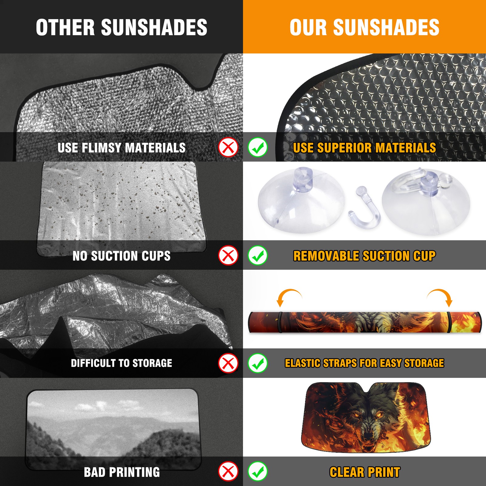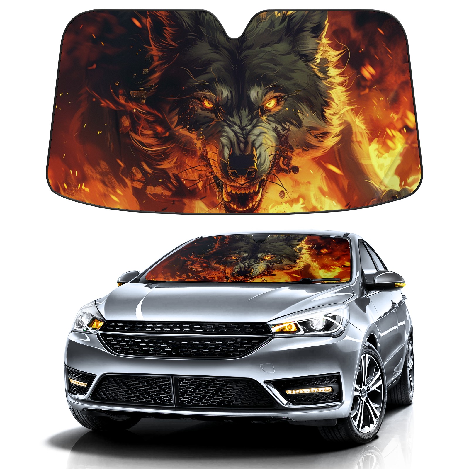 Car Windshield Sun Shade For Front Window Wolf (1) Foldable Vehicle Windshield Car Sun Visor Covers Automotive Window Protector Car Camping Privacy Sun Blocker