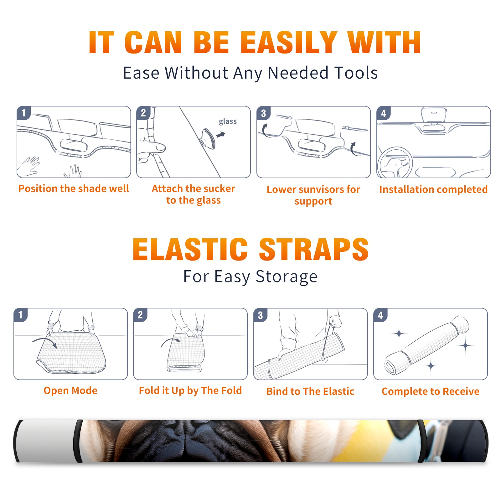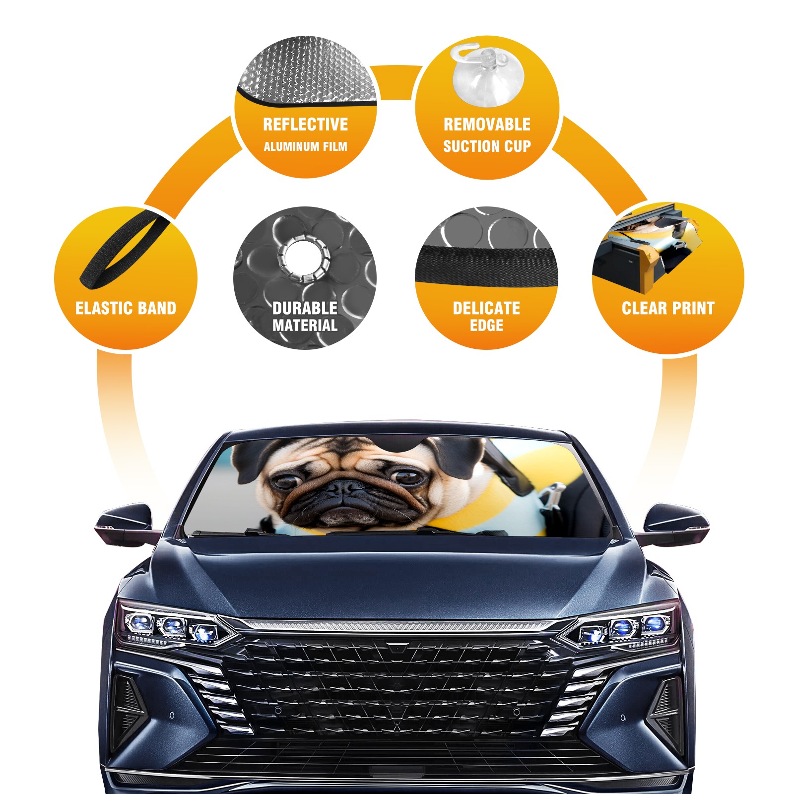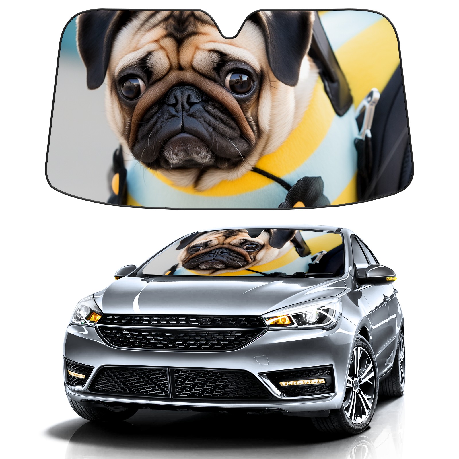 Car Windshield Sun Shade For Front Window PugDog (3) Foldable Vehicle Windshield Car Sun Visor Covers Automotive Window Protector Car Camping Privacy Sun Blocker