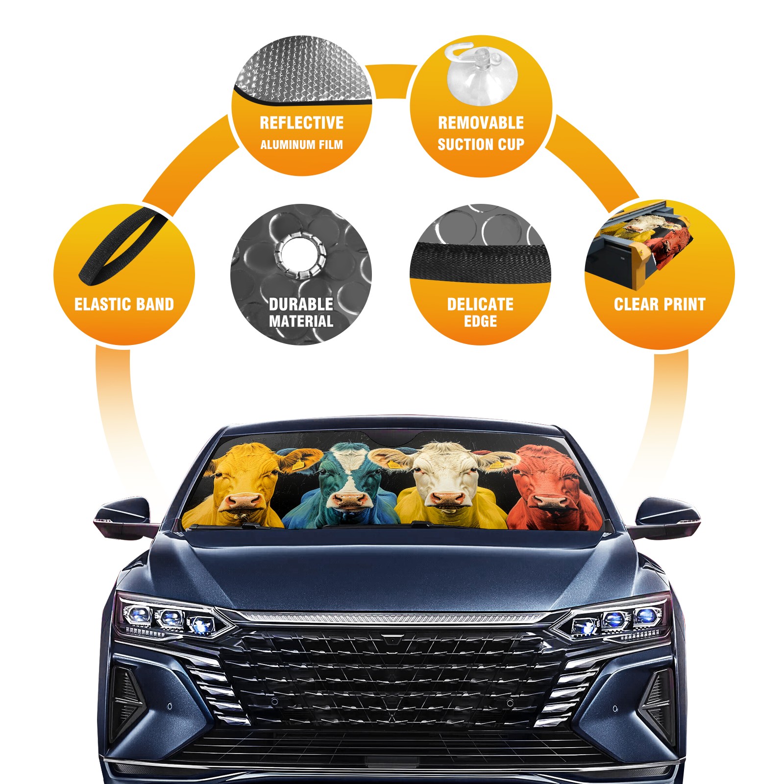 • Diameter /Size 63"L x 33.5"W Made from excellent materials which makes it sturdy and protects the car from the sun. Easy to use and pack. Makes the interior of the car cooler.You can easily stash the sunshade in the storage bag or store long term.It open and closes easy. Also the leather storage bag is durable and easy to put the umbrella back into.This windshield sunshade provides complete coverage and keeps your car interior cool under direct sun. It is easy to open and position under the windshield and around the rear-view mirror. Makes Your Car Easy To Identify, Perfect For Finding Your Car In Crowded Parking Lots And Garages.Great Choice: It Is A Great Gift For Dad, Boyfriend, Brother, Brother And Uncle, Friends, Classmates, Family And So On. Notice: Due To Difference Computer Monitors, The Color Maybe Slightly Different From Picture. As Different Measurement Methods, Measurement Data Will Float Within 2%.I Hope You Understand. If You Have Any Question About The Item Please Do Not Hesitate To Contact Us Immediately And We Will Give You A Satisfactory Reply Within 24 Hours.