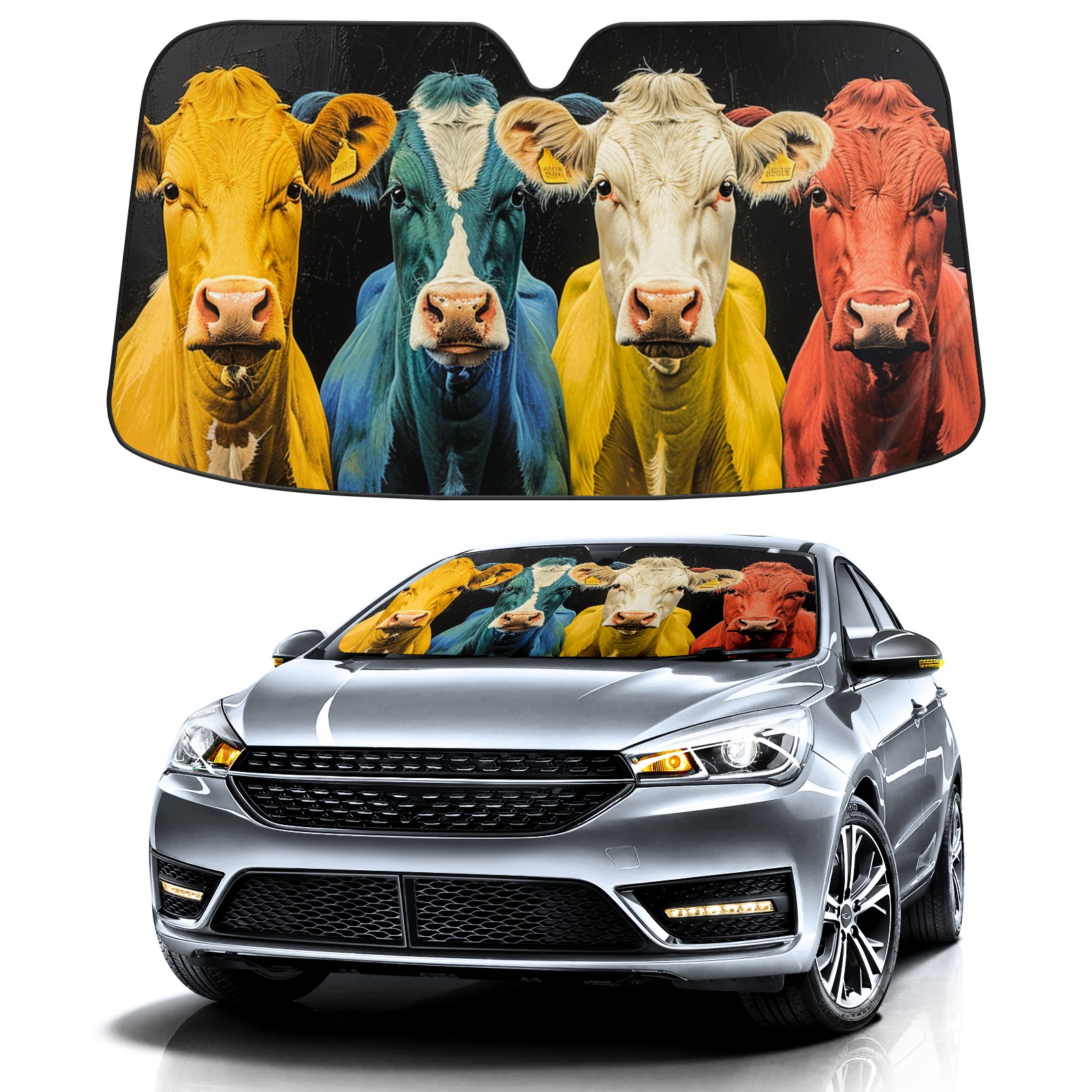 Car Windshield Sun Shade For Front Window WaterColorRacco (2) Foldable Vehicle Windshield Car Sun Visor Covers Automotive Window Protector Car Camping Privacy Sun Blocker