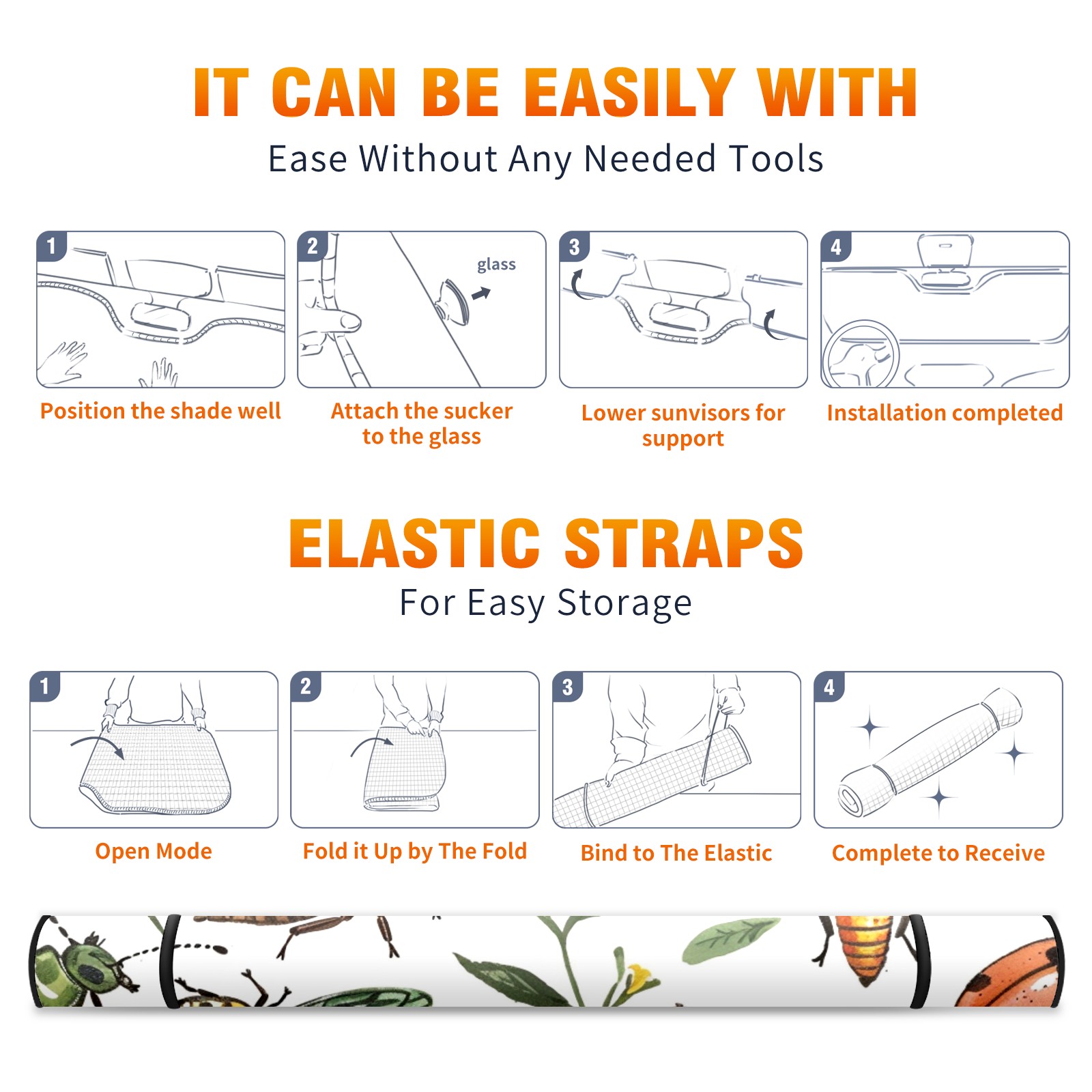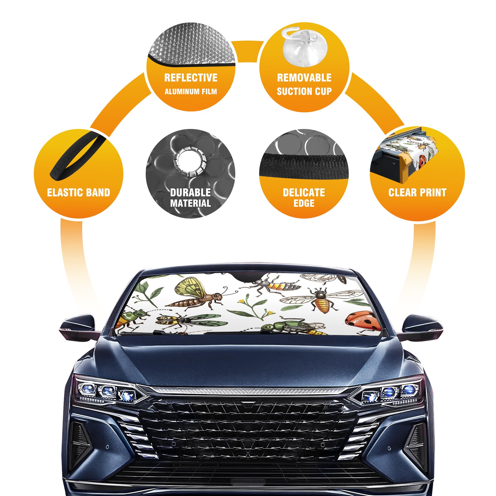 Car Windshield Sun Shade For Front Window Insects (3) Foldable Vehicle Windshield Car Sun Visor Covers Automotive Window Protector Car Camping Privacy Sun Blocker