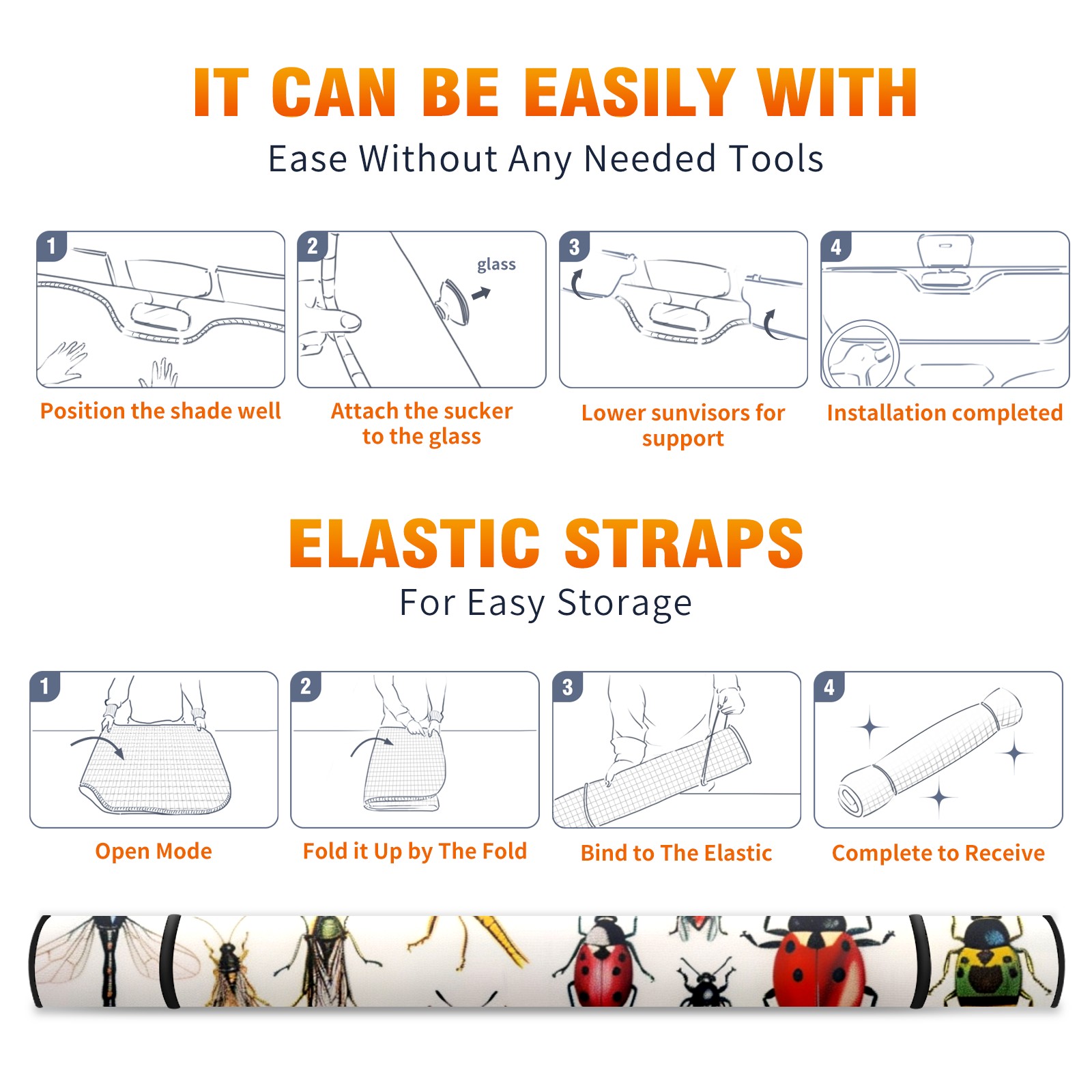 Car Windshield Sun Shade For Front Window Insects (2) Foldable Vehicle Windshield Car Sun Visor Covers Automotive Window Protector Car Camping Privacy Sun Blocker