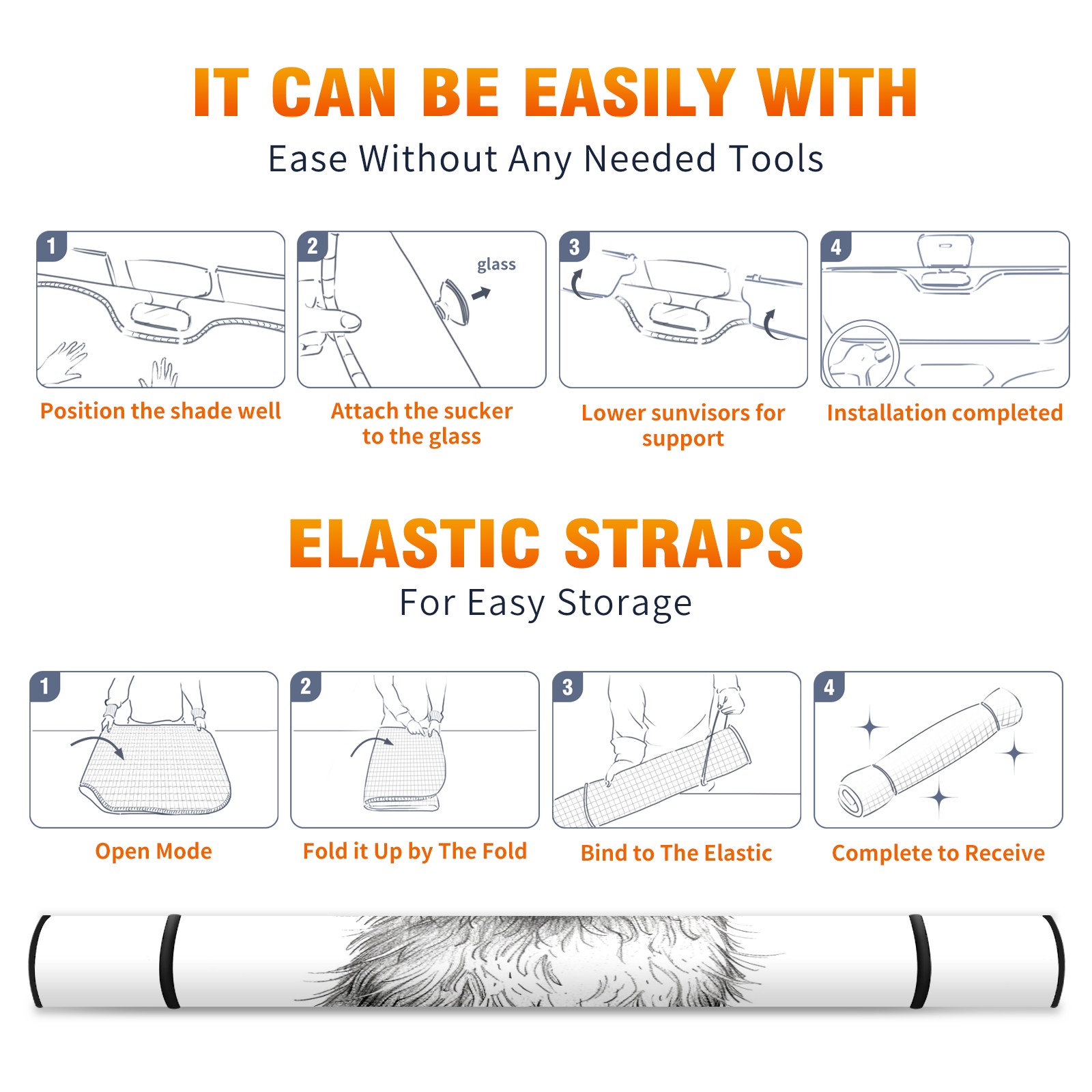 • Diameter /Size 63"L x 33.5"W Made from excellent materials which makes it sturdy and protects the car from the sun. Easy to use and pack. Makes the interior of the car cooler.You can easily stash the sunshade in the storage bag or store long term.It open and closes easy. Also the leather storage bag is durable and easy to put the umbrella back into.This windshield sunshade provides complete coverage and keeps your car interior cool under direct sun. It is easy to open and position under the windshield and around the rear-view mirror. Makes Your Car Easy To Identify, Perfect For Finding Your Car In Crowded Parking Lots And Garages.Great Choice: It Is A Great Gift For Dad, Boyfriend, Brother, Brother And Uncle, Friends, Classmates, Family And So On. Notice: Due To Difference Computer Monitors, The Color Maybe Slightly Different From Picture. As Different Measurement Methods, Measurement Data Will Float Within 2%.I Hope You Understand. If You Have Any Question About The Item Please Do Not Hesitate To Contact Us Immediately And We Will Give You A Satisfactory Reply Within 24 Hours.