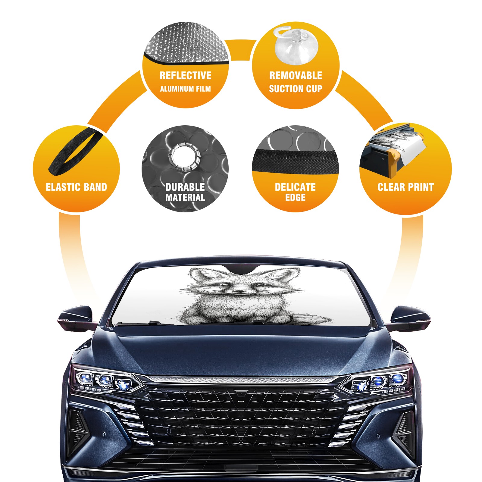 Car Windshield Sun Shade For Front Window Fox (1) Foldable Vehicle Windshield Car Sun Visor Covers Automotive Window Protector Car Camping Privacy Sun Blocker