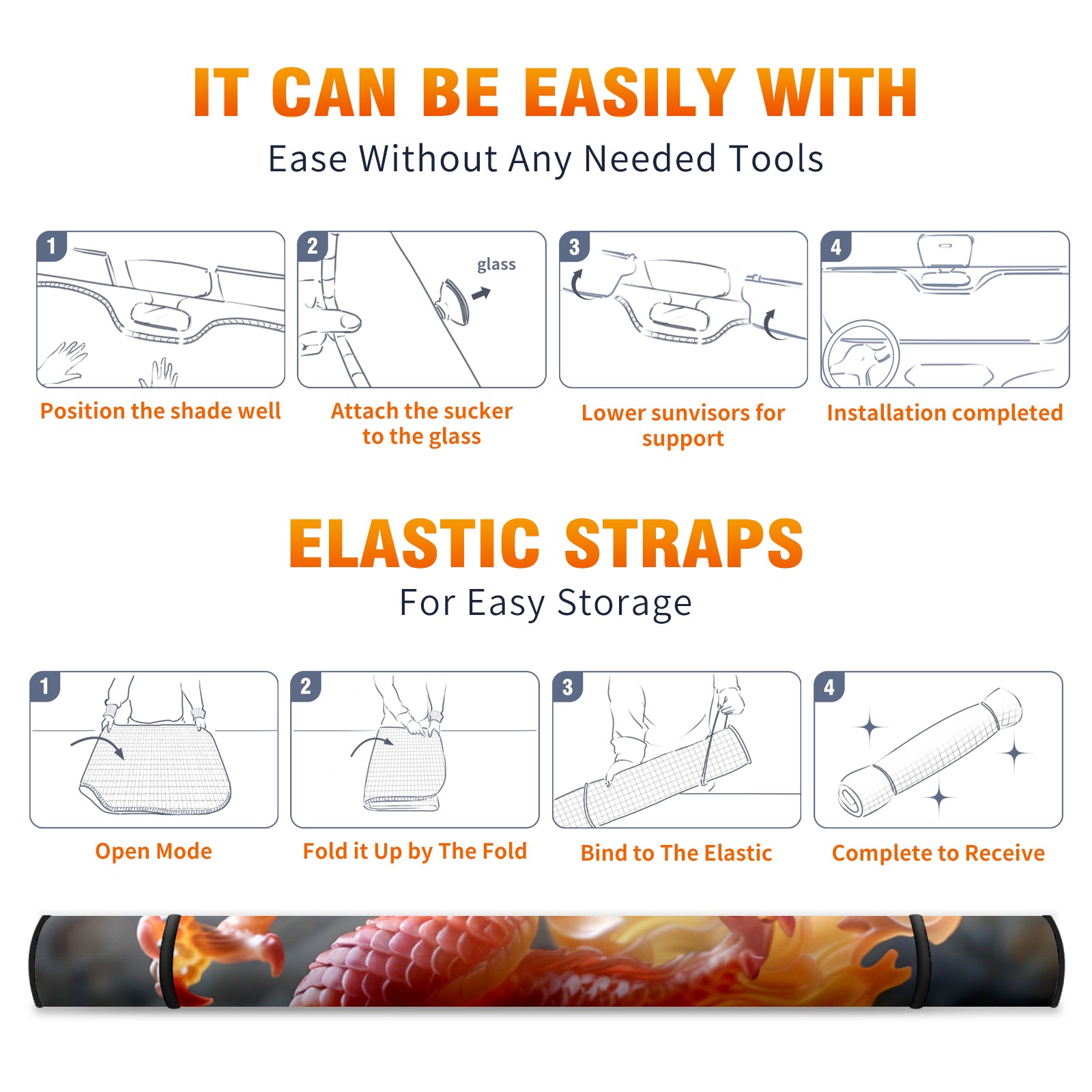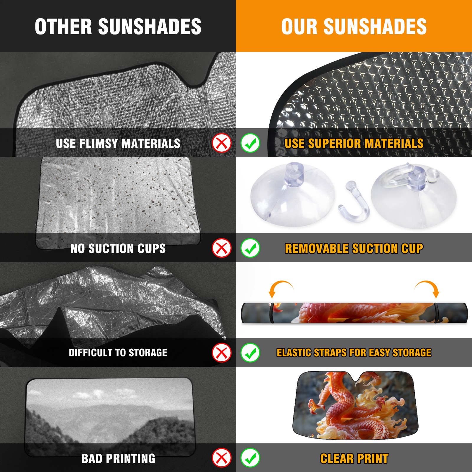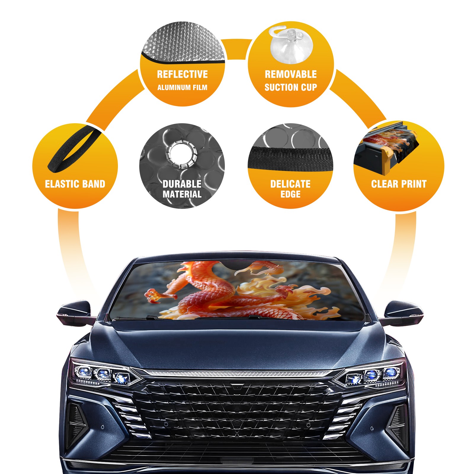 Car Windshield Sun Shade For Front Window Dragon (4) Foldable Vehicle Windshield Car Sun Visor Covers Automotive Window Protector Car Camping Privacy Sun Blocker