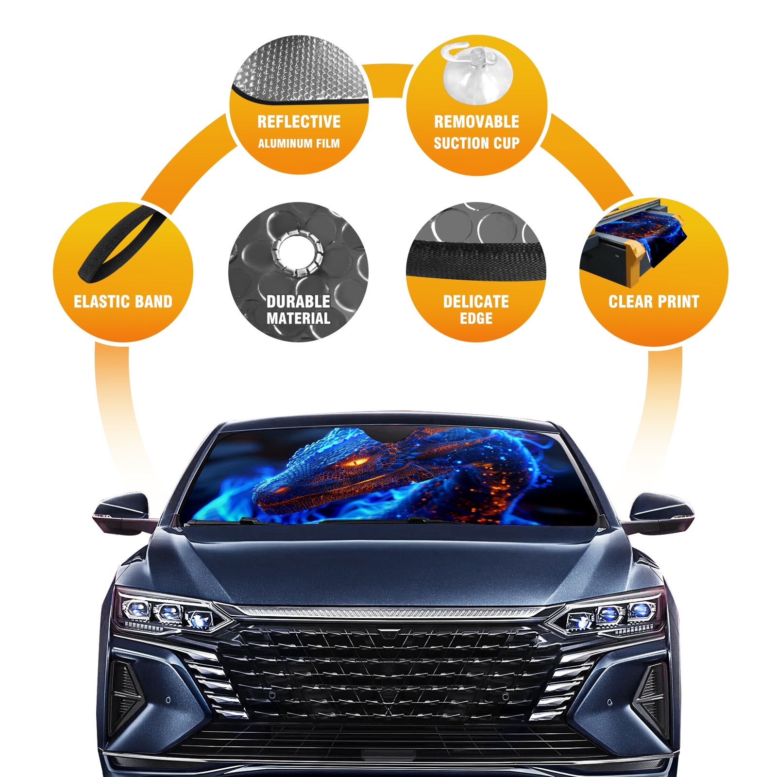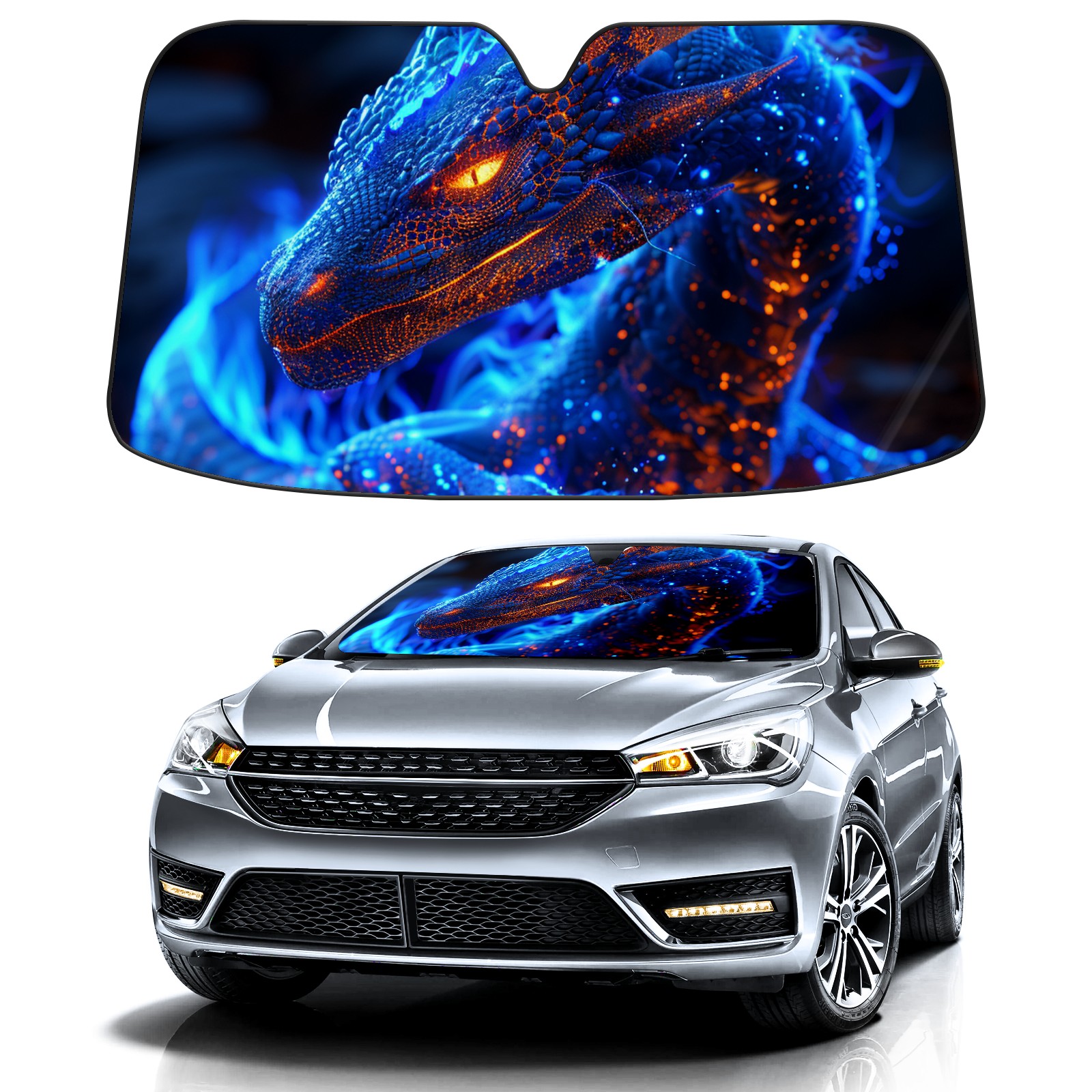 Car Windshield Sun Shade For Front Window Dragon (2) Foldable Vehicle Windshield Car Sun Visor Covers Automotive Window Protector Car Camping Privacy Sun Blocker