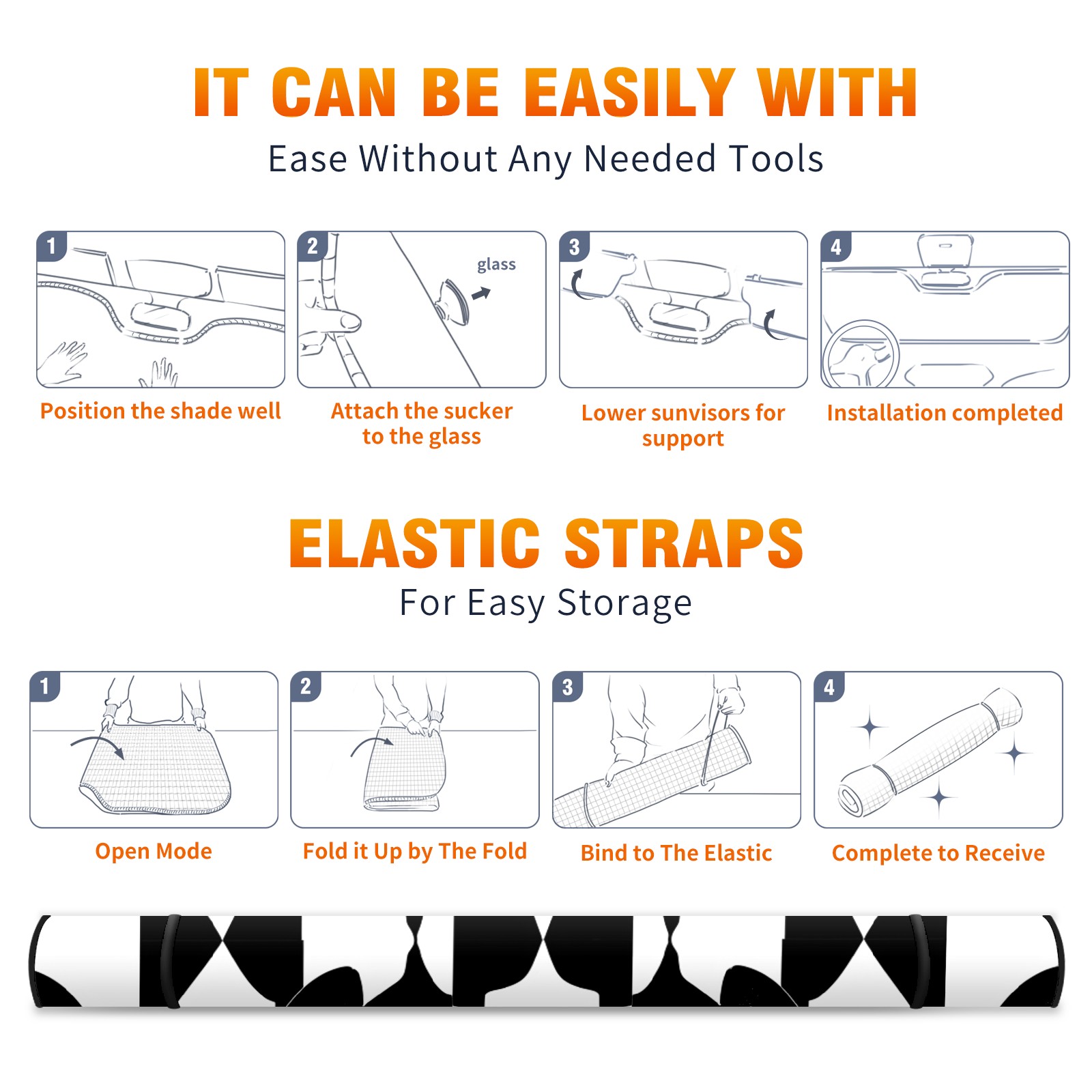 • Diameter /Size 63"L x 33.5"W Made from excellent materials which makes it sturdy and protects the car from the sun. Easy to use and pack. Makes the interior of the car cooler.You can easily stash the sunshade in the storage bag or store long term.It open and closes easy. Also the leather storage bag is durable and easy to put the umbrella back into.This windshield sunshade provides complete coverage and keeps your car interior cool under direct sun. It is easy to open and position under the windshield and around the rear-view mirror. Makes Your Car Easy To Identify, Perfect For Finding Your Car In Crowded Parking Lots And Garages.Great Choice: It Is A Great Gift For Dad, Boyfriend, Brother, Brother And Uncle, Friends, Classmates, Family And So On. Notice: Due To Difference Computer Monitors, The Color Maybe Slightly Different From Picture. As Different Measurement Methods, Measurement Data Will Float Within 2%.I Hope You Understand. If You Have Any Question About The Item Please Do Not Hesitate To Contact Us Immediately And We Will Give You A Satisfactory Reply Within 24 Hours.