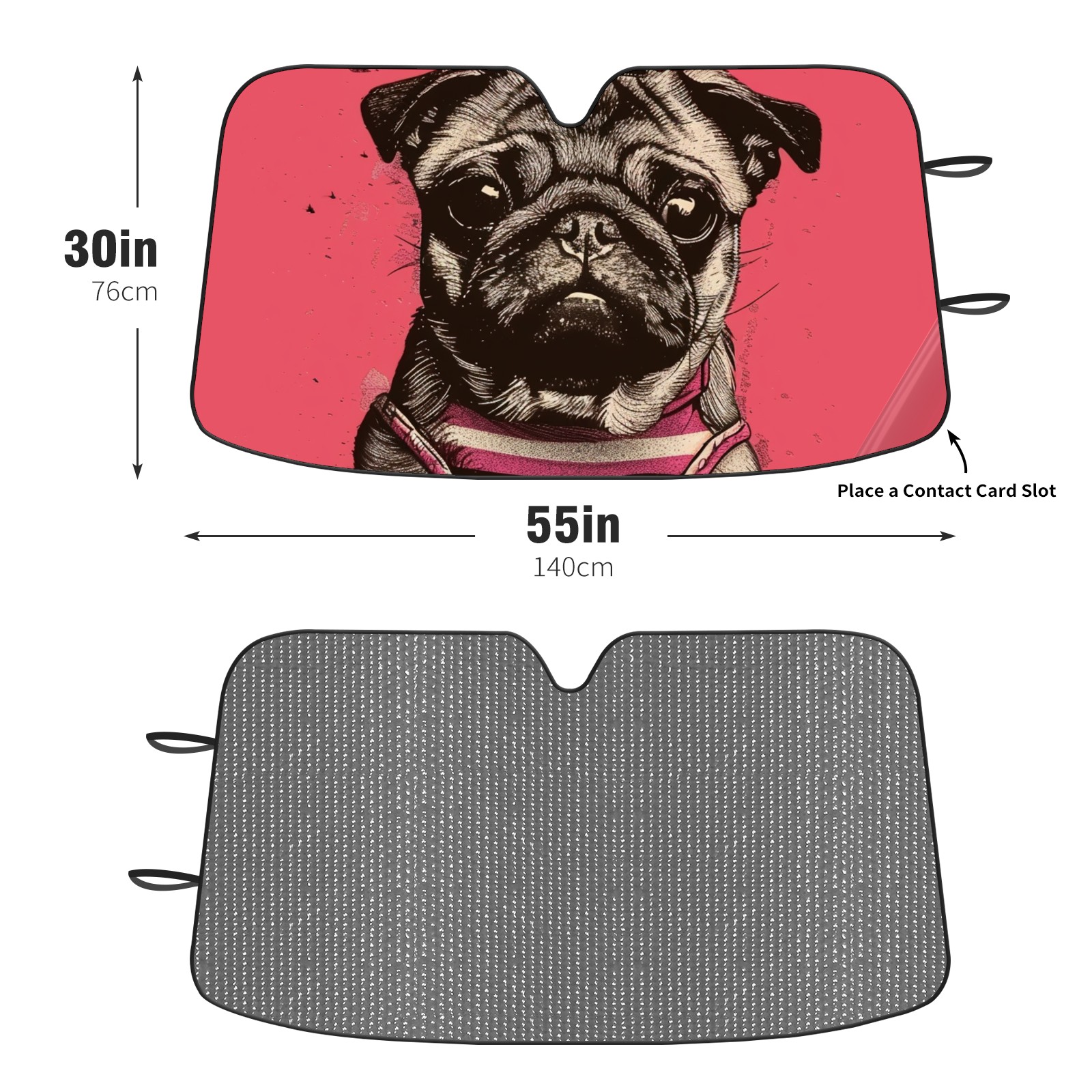 Diameter /Size 63"L x 33.5"W Made from excellent materials which makes it sturdy and protects the car from the sun. Easy to use and pack. Makes the interior of the car cooler.You can easily stash the sunshade in the storage bag or store long term.It open and closes easy. Also the leather storage bag is durable and easy to put the umbrella back into.This windshield sunshade provides complete coverage and keeps your car interior cool under direct sun. It is easy to open and position under the windshield and around the rear-view mirror. Makes Your Car Easy To Identify, Perfect For Finding Your Car In Crowded Parking Lots And Garages.Great Choice: It Is A Great Gift For Dad, Boyfriend, Brother, Brother And Uncle, Friends, Classmates, Family And So On. Notice: Due To Difference Computer Monitors, The Color Maybe Slightly Different From Picture. As Different Measurement Methods, Measurement Data Will Float Within 2%.I Hope You Understand. If You Have Any Question About The Item Please Do Not Hesitate To Contact Us Immediately And We Will Give You A Satisfactory Reply Within 24 Hours.
