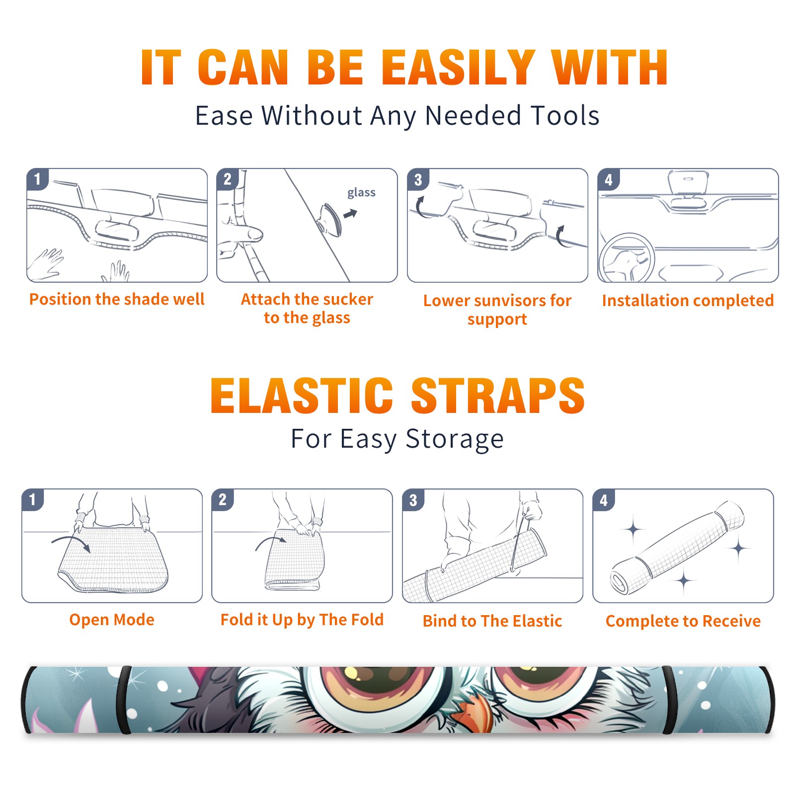 Car Windshield Sun Shade For Front Window CuteCartooNowl (6) Foldable Vehicle Windshield Car Sun Visor Covers Automotive Window Protector Car Camping Privacy Sun Blocker