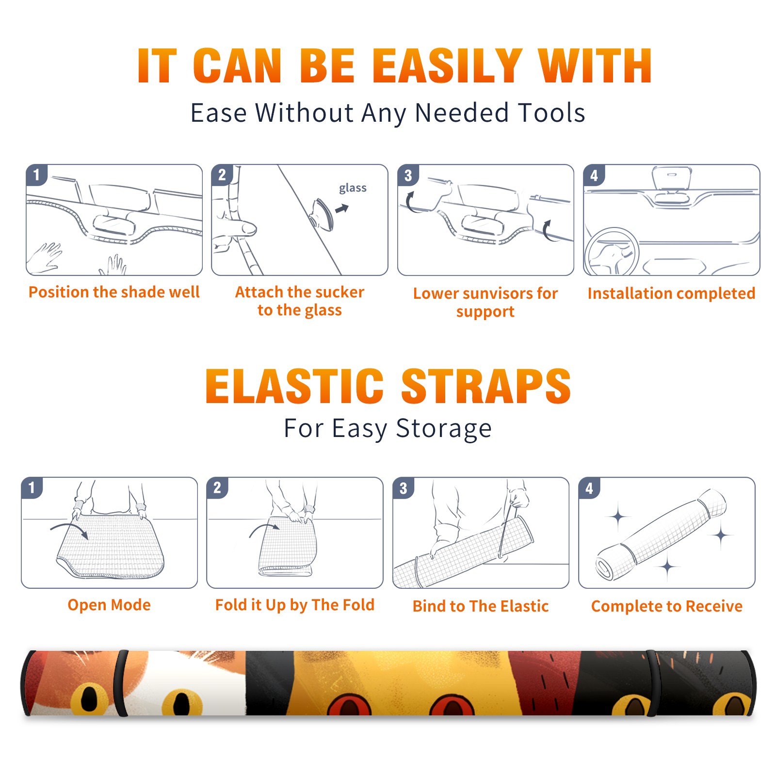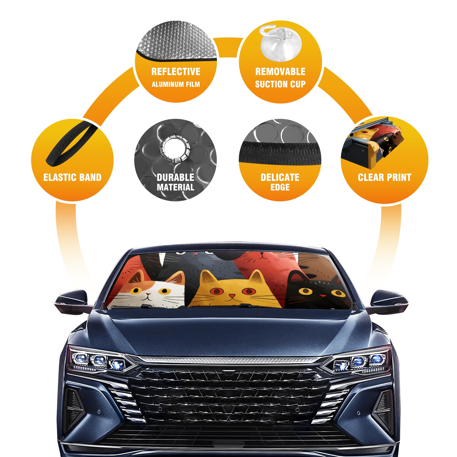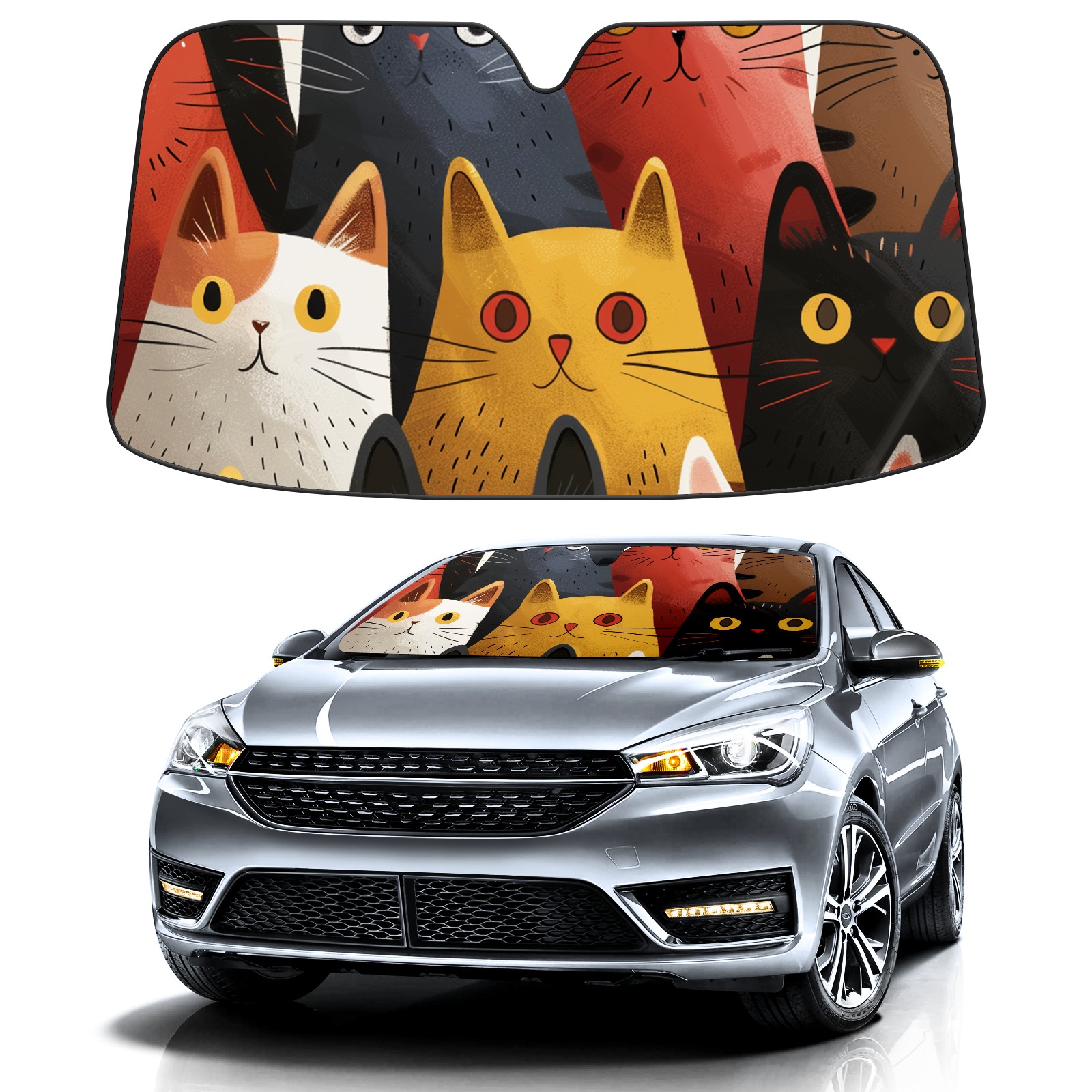 Car Windshield Sun Shade For Front Window Cutecartooncats (1) Foldable Vehicle Windshield Car Sun Visor Covers Automotive Window Protector Car Camping Privacy Sun Blocker