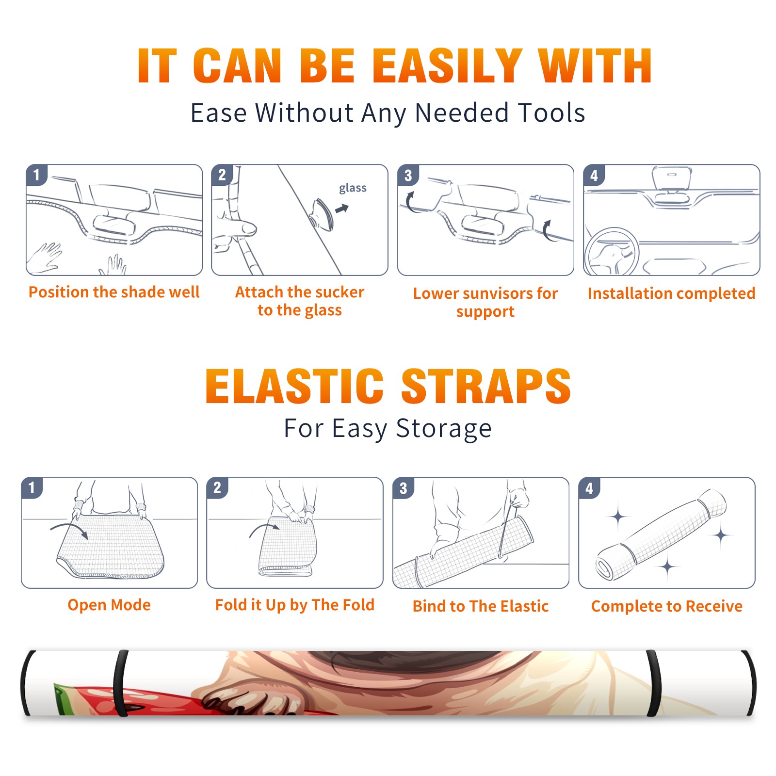 • Diameter /Size 63"L x 33.5"W Made from excellent materials which makes it sturdy and protects the car from the sun. Easy to use and pack. Makes the interior of the car cooler.You can easily stash the sunshade in the storage bag or store long term.It open and closes easy. Also the leather storage bag is durable and easy to put the umbrella back into.This windshield sunshade provides complete coverage and keeps your car interior cool under direct sun. It is easy to open and position under the windshield and around the rear-view mirror. Makes Your Car Easy To Identify, Perfect For Finding Your Car In Crowded Parking Lots And Garages.Great Choice: It Is A Great Gift For Dad, Boyfriend, Brother, Brother And Uncle, Friends, Classmates, Family And So On. Notice: Due To Difference Computer Monitors, The Color Maybe Slightly Different From Picture. As Different Measurement Methods, Measurement Data Will Float Within 2%.I Hope You Understand. If You Have Any Question About The Item Please Do Not Hesitate To Contact Us Immediately And We Will Give You A Satisfactory Reply Within 24 Hours.