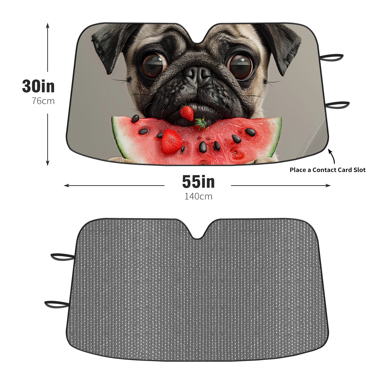 Diameter /Size 63"L x 33.5"W Made from excellent materials which makes it sturdy and protects the car from the sun. Easy to use and pack. Makes the interior of the car cooler.You can easily stash the sunshade in the storage bag or store long term.It open and closes easy. Also the leather storage bag is durable and easy to put the umbrella back into.This windshield sunshade provides complete coverage and keeps your car interior cool under direct sun. It is easy to open and position under the windshield and around the rear-view mirror. Makes Your Car Easy To Identify, Perfect For Finding Your Car In Crowded Parking Lots And Garages.Great Choice: It Is A Great Gift For Dad, Boyfriend, Brother, Brother And Uncle, Friends, Classmates, Family And So On. Notice: Due To Difference Computer Monitors, The Color Maybe Slightly Different From Picture. As Different Measurement Methods, Measurement Data Will Float Within 2%.I Hope You Understand. If You Have Any Question About The Item Please Do Not Hesitate To Contact Us Immediately And We Will Give You A Satisfactory Reply Within 24 Hours.