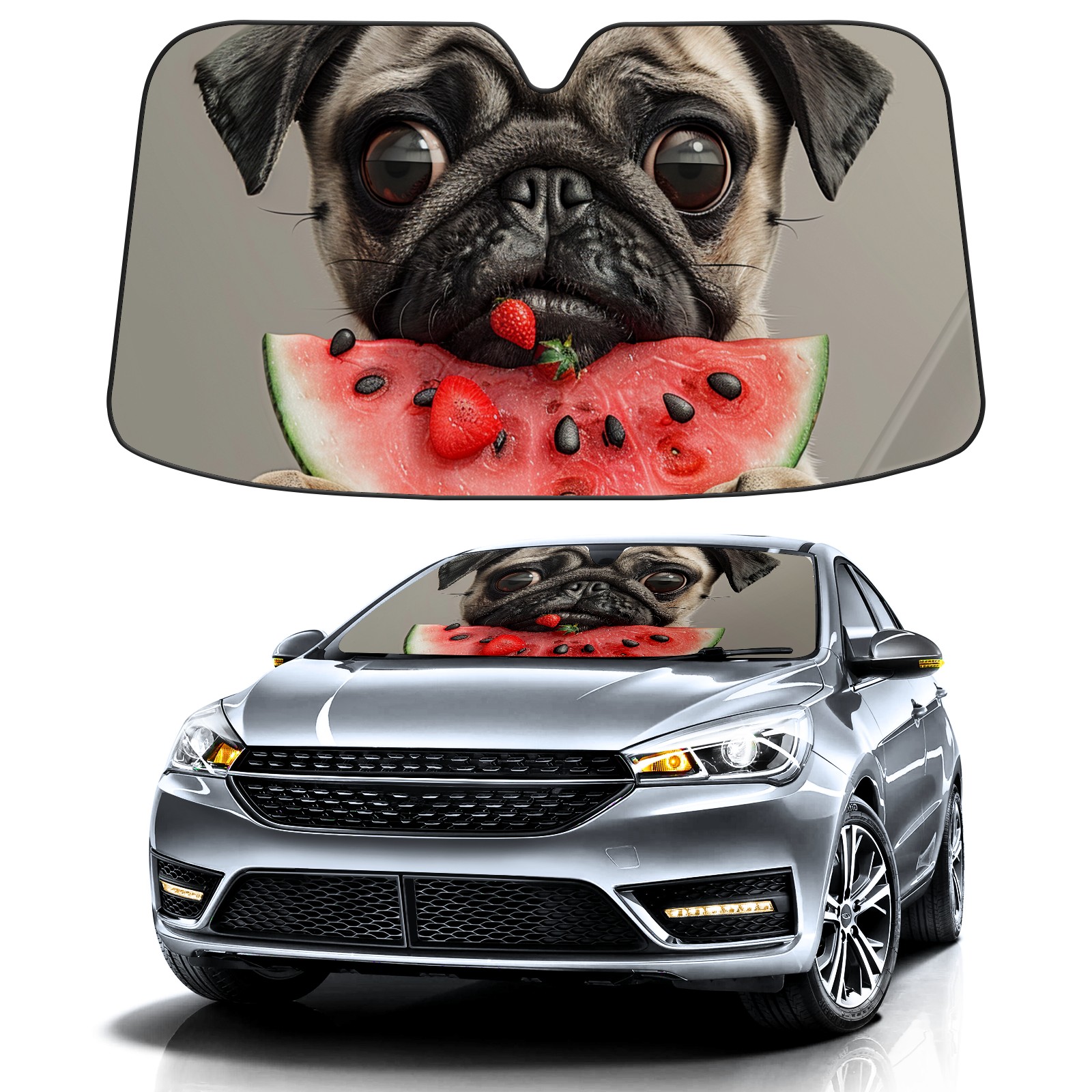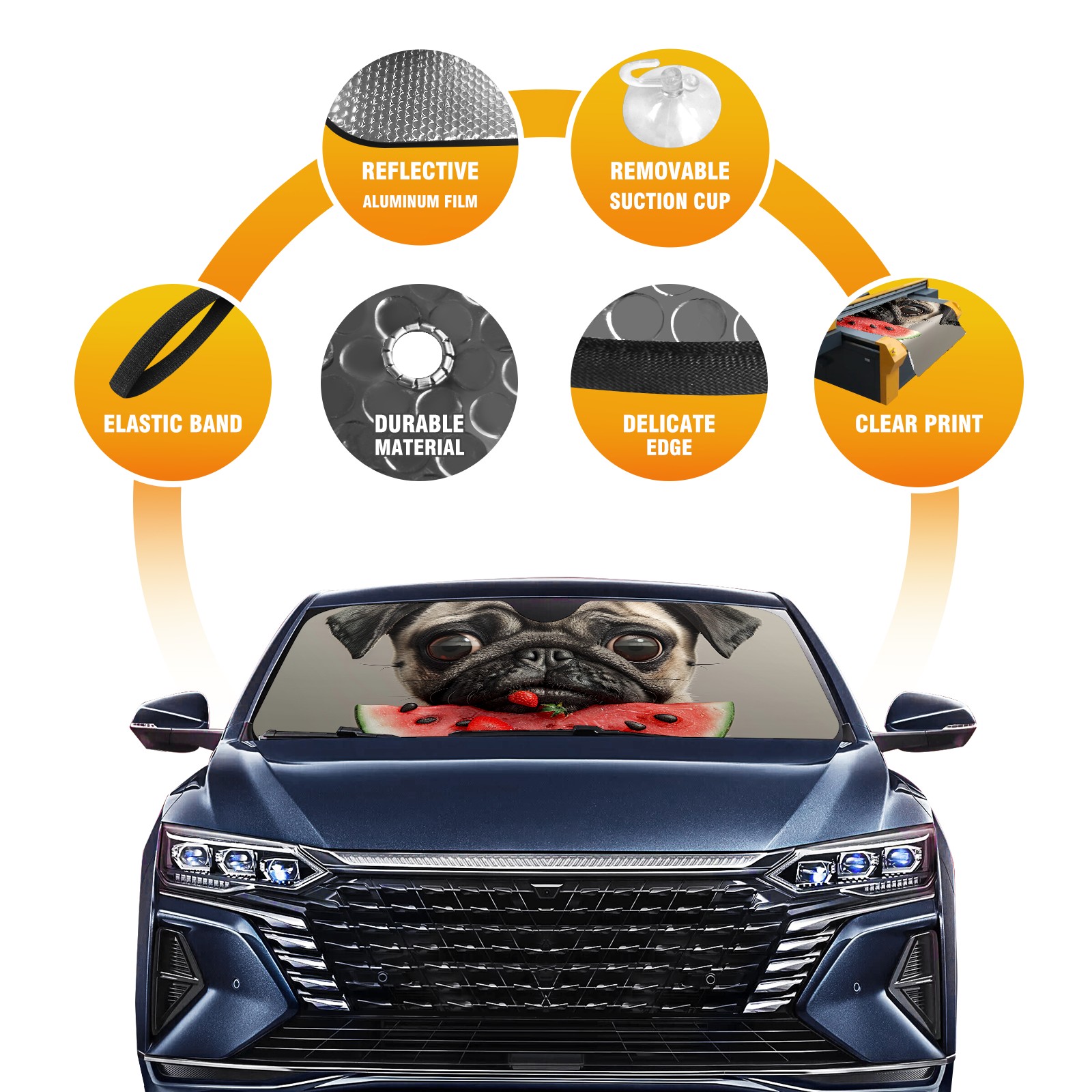 • Diameter /Size 63"L x 33.5"W Made from excellent materials which makes it sturdy and protects the car from the sun. Easy to use and pack. Makes the interior of the car cooler.You can easily stash the sunshade in the storage bag or store long term.It open and closes easy. Also the leather storage bag is durable and easy to put the umbrella back into.This windshield sunshade provides complete coverage and keeps your car interior cool under direct sun. It is easy to open and position under the windshield and around the rear-view mirror. Makes Your Car Easy To Identify, Perfect For Finding Your Car In Crowded Parking Lots And Garages.Great Choice: It Is A Great Gift For Dad, Boyfriend, Brother, Brother And Uncle, Friends, Classmates, Family And So On. Notice: Due To Difference Computer Monitors, The Color Maybe Slightly Different From Picture. As Different Measurement Methods, Measurement Data Will Float Within 2%.I Hope You Understand. If You Have Any Question About The Item Please Do Not Hesitate To Contact Us Immediately And We Will Give You A Satisfactory Reply Within 24 Hours.