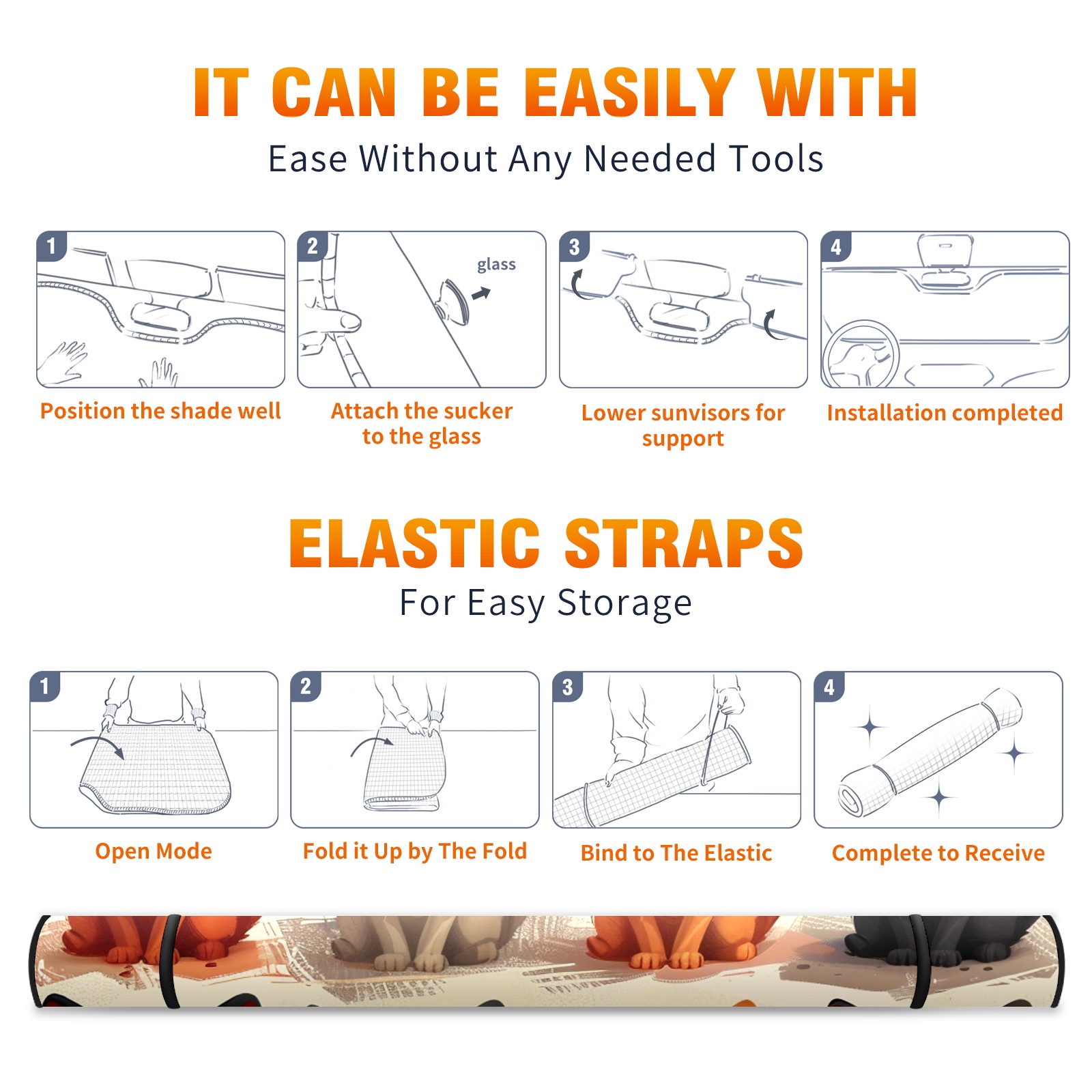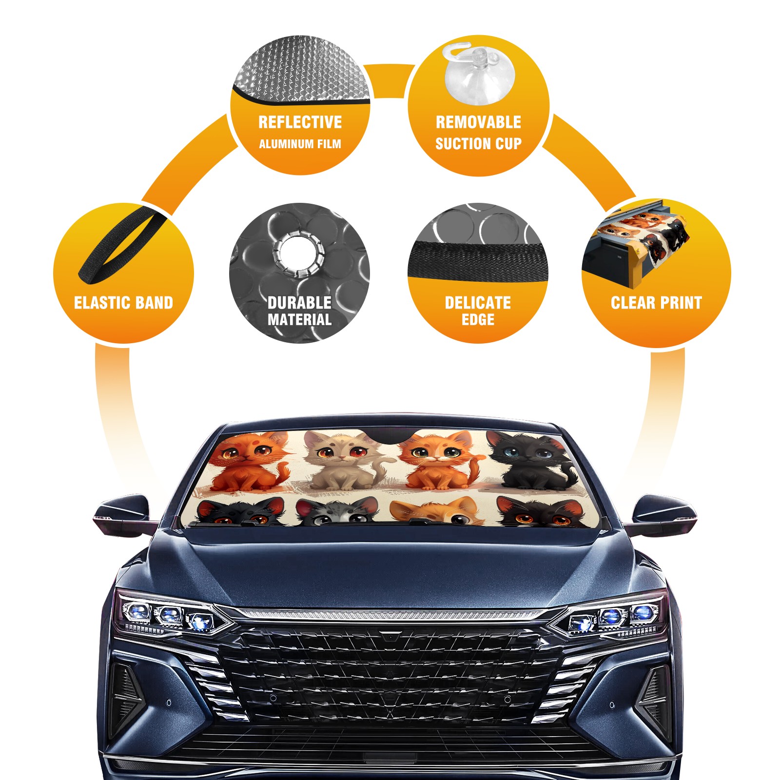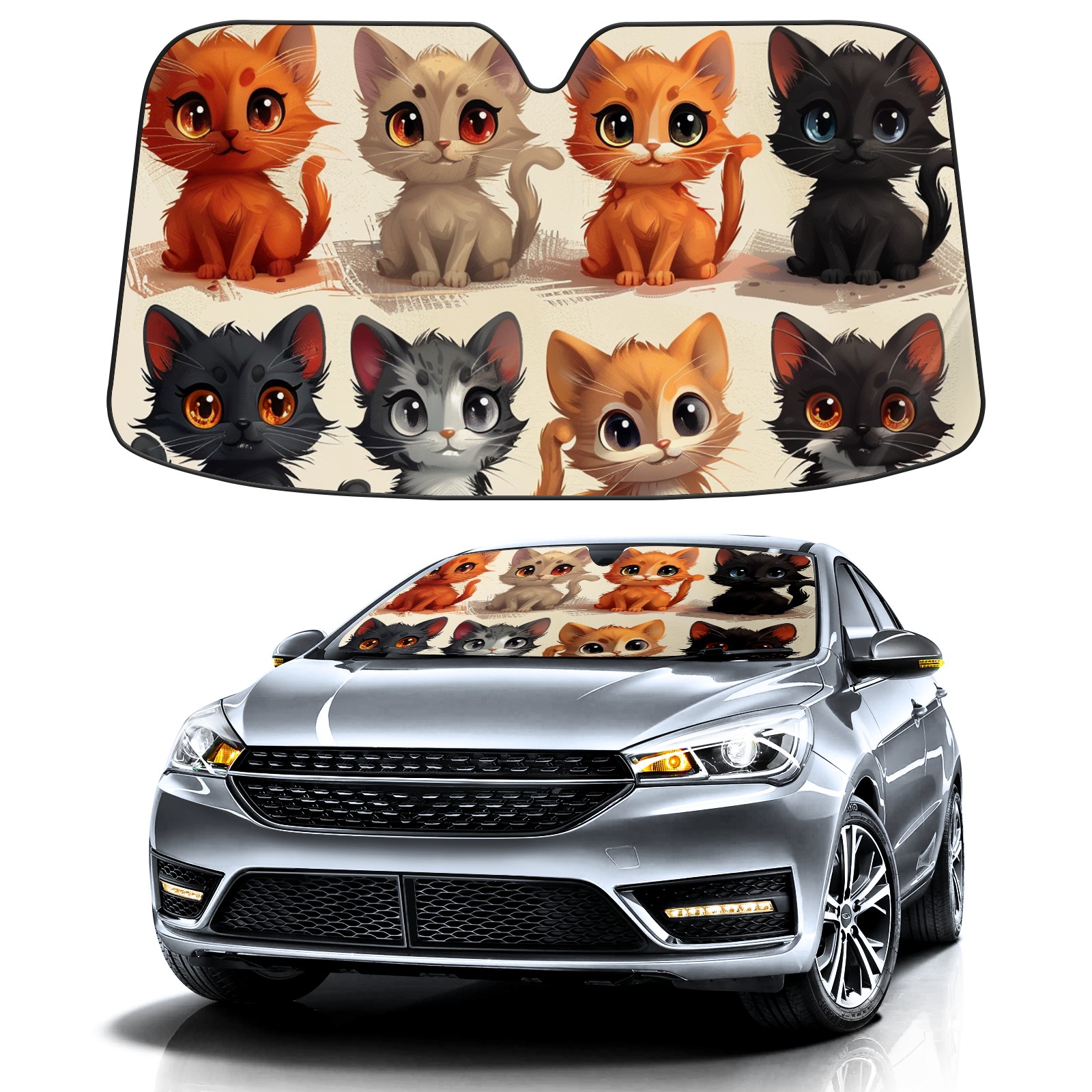 Car Windshield Sun Shade For Front Window Cute Cartoon Cats (1) Foldable Vehicle Windshield Car Sun Visor Covers Automotive Window Protector Car Camping Privacy Sun Blocker