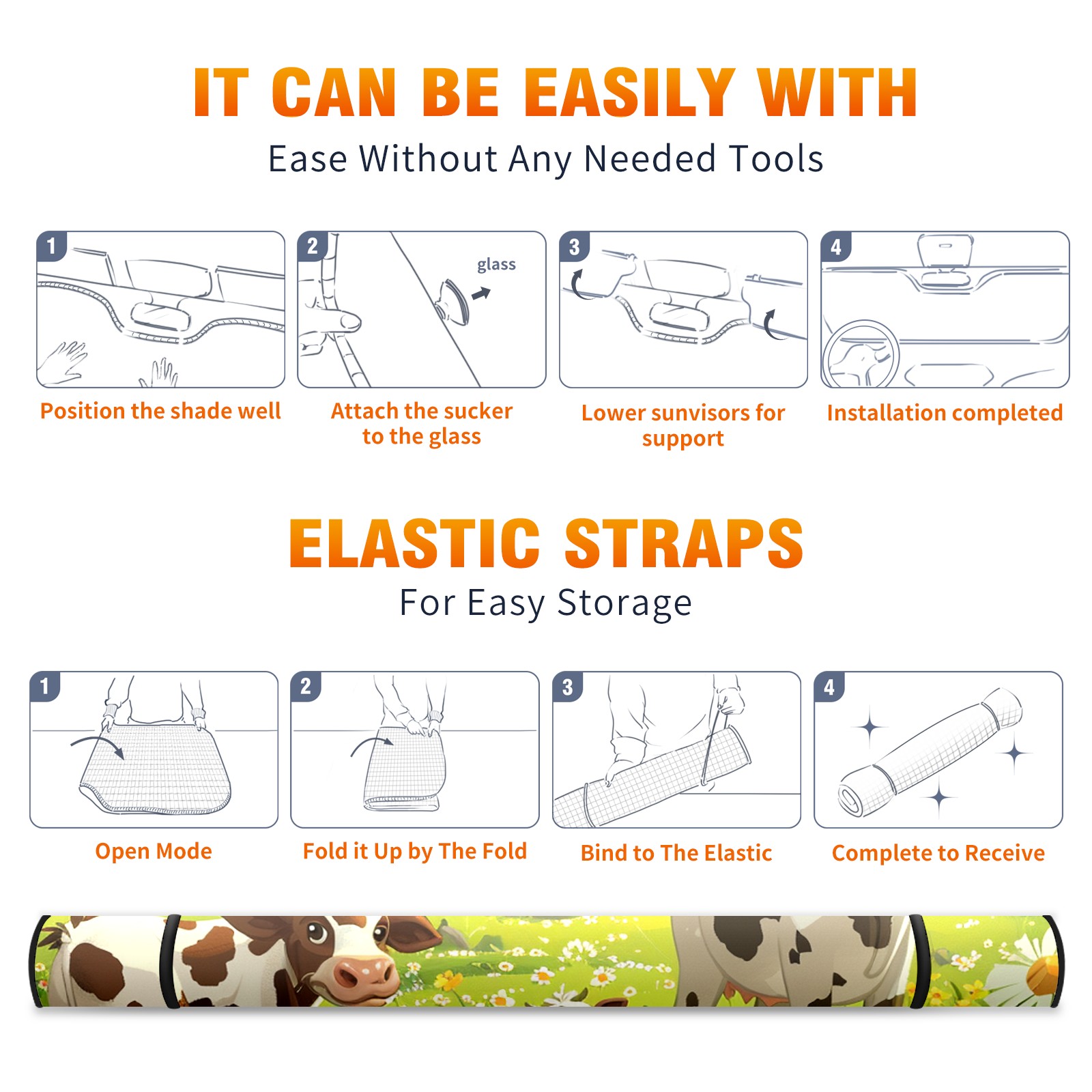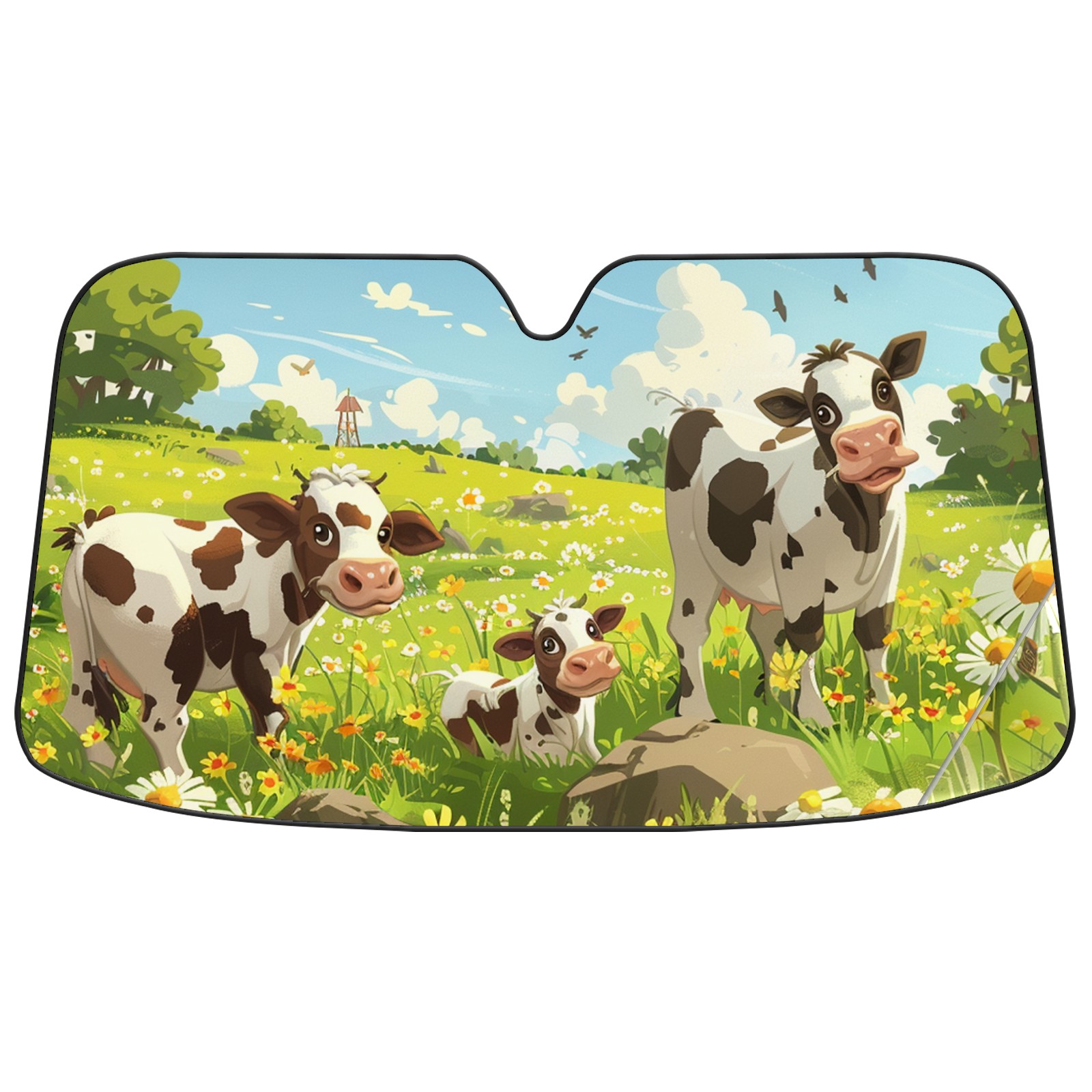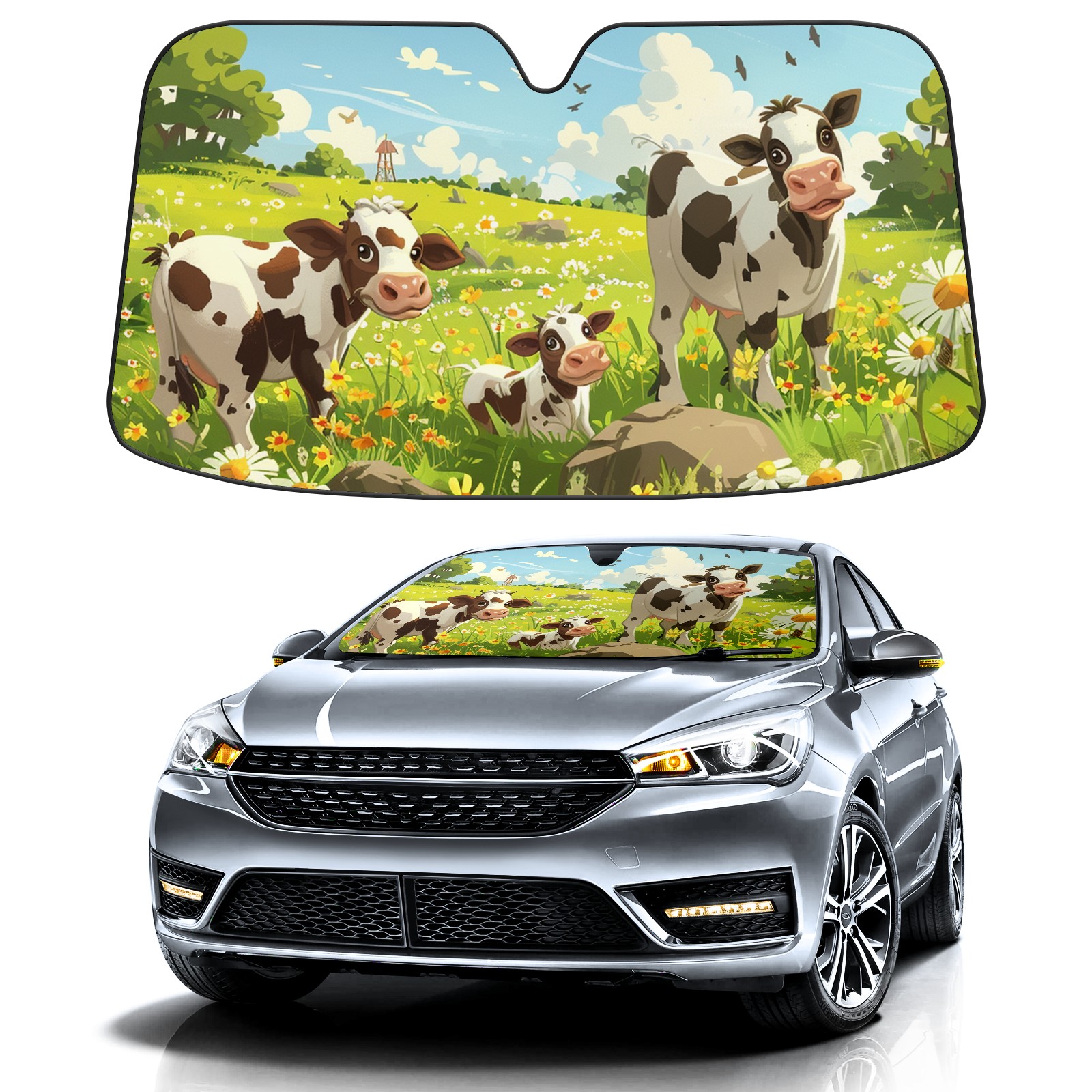 Car Windshield Sun Shade For Front Window Cows In The Meadow Cartoon Cute Style2 Foldable Vehicle Windshield Car Sun Visor Covers Automotive Window Protector Car Camping Privacy Sun Blocker