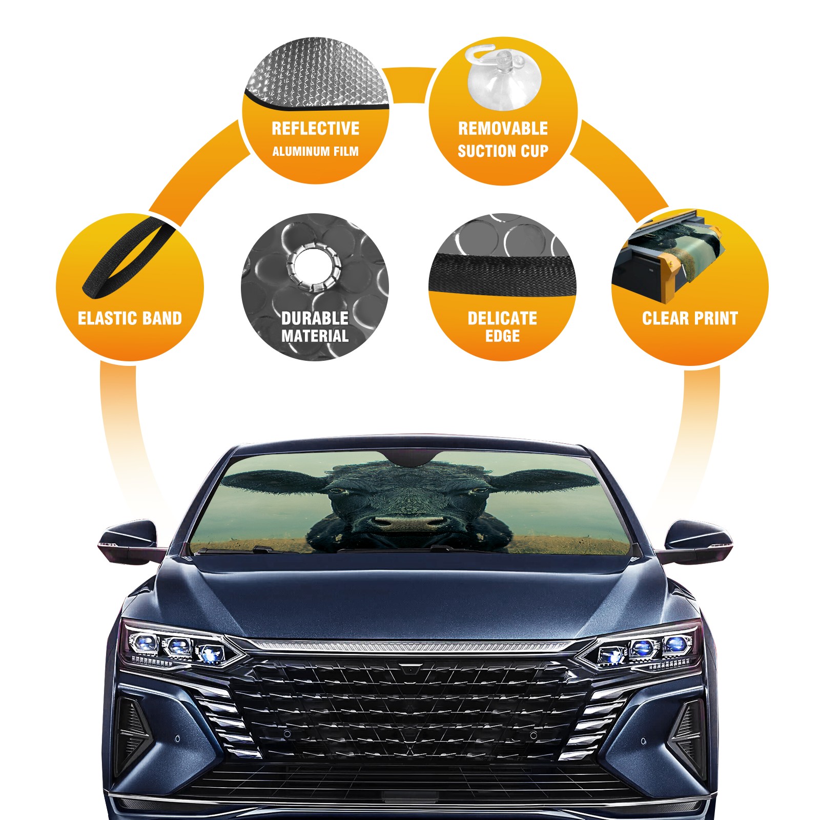 Car Windshield Sun Shade For Front Window Cow Foldable Vehicle Windshield Car Sun Visor Covers Automotive Window Protector Car Camping Privacy Sun Blocker