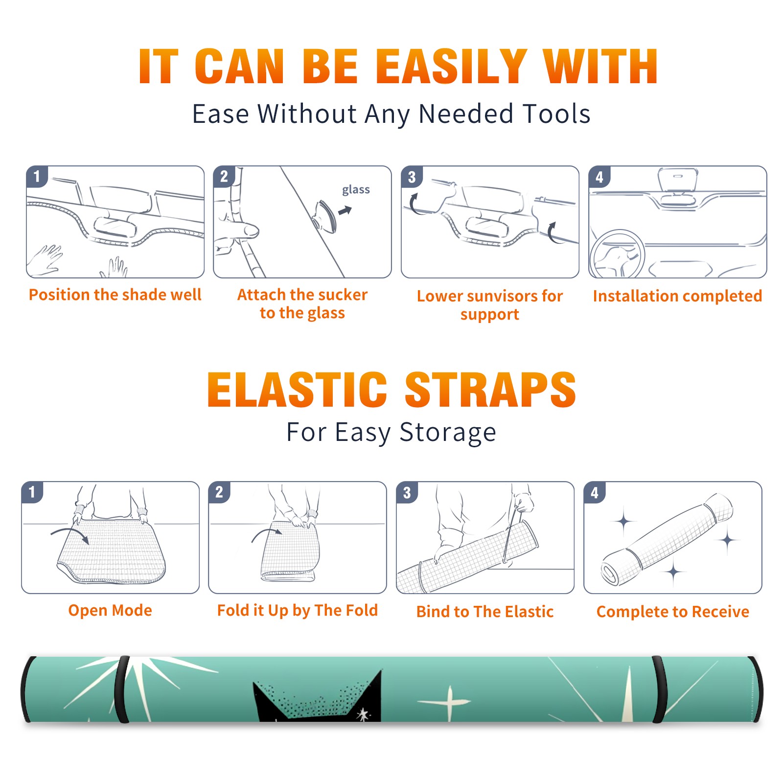 • Diameter /Size 63"L x 33.5"W Made from excellent materials which makes it sturdy and protects the car from the sun. Easy to use and pack. Makes the interior of the car cooler.You can easily stash the sunshade in the storage bag or store long term.It open and closes easy. Also the leather storage bag is durable and easy to put the umbrella back into.This windshield sunshade provides complete coverage and keeps your car interior cool under direct sun. It is easy to open and position under the windshield and around the rear-view mirror. Makes Your Car Easy To Identify, Perfect For Finding Your Car In Crowded Parking Lots And Garages.Great Choice: It Is A Great Gift For Dad, Boyfriend, Brother, Brother And Uncle, Friends, Classmates, Family And So On. Notice: Due To Difference Computer Monitors, The Color Maybe Slightly Different From Picture. As Different Measurement Methods, Measurement Data Will Float Within 2%.I Hope You Understand. If You Have Any Question About The Item Please Do Not Hesitate To Contact Us Immediately And We Will Give You A Satisfactory Reply Within 24 Hours.