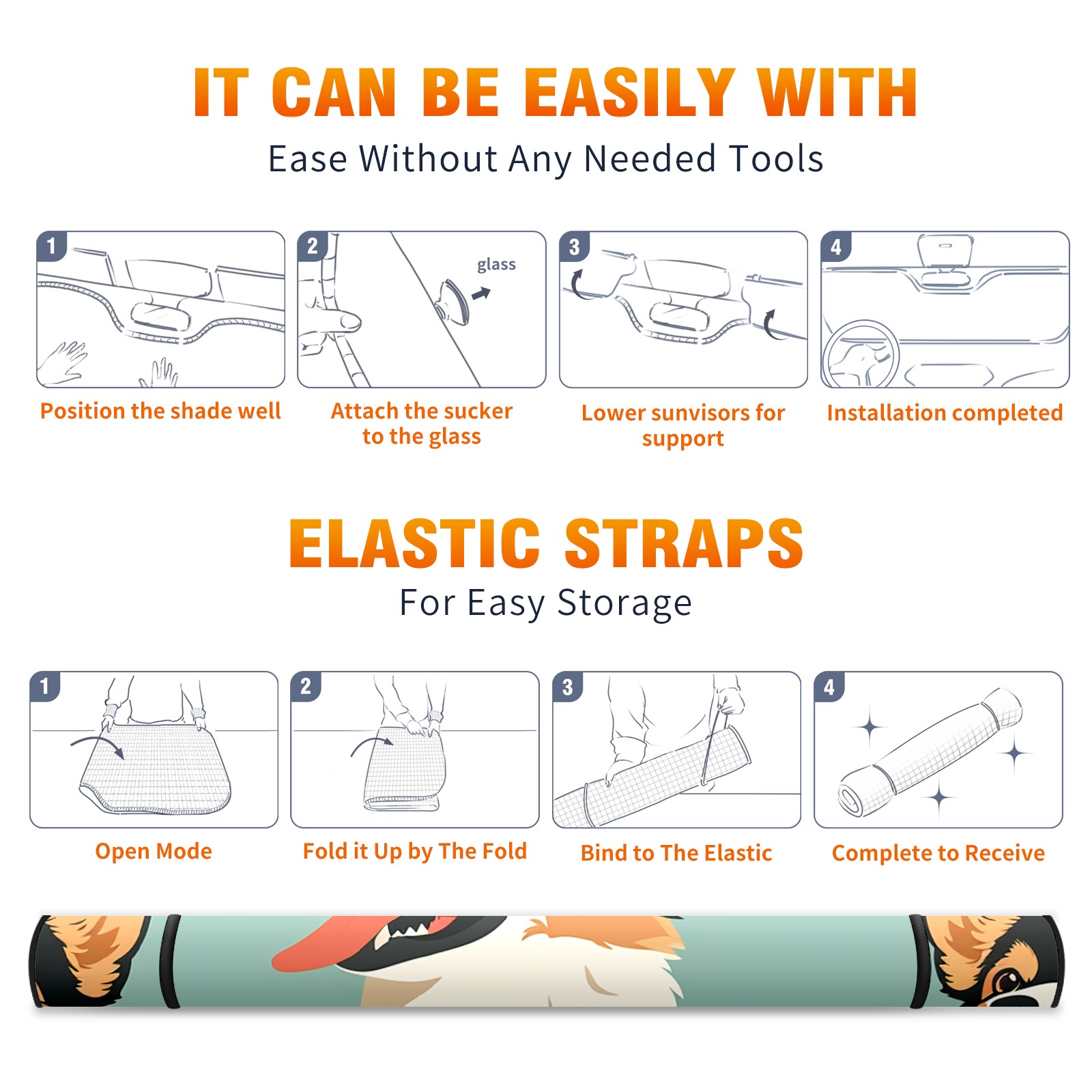Car Windshield Sun Shade For Front Window A CuteDog (5) Foldable Vehicle Windshield Car Sun Visor Covers Automotive Window Protector Car Camping Privacy Sun Blocker