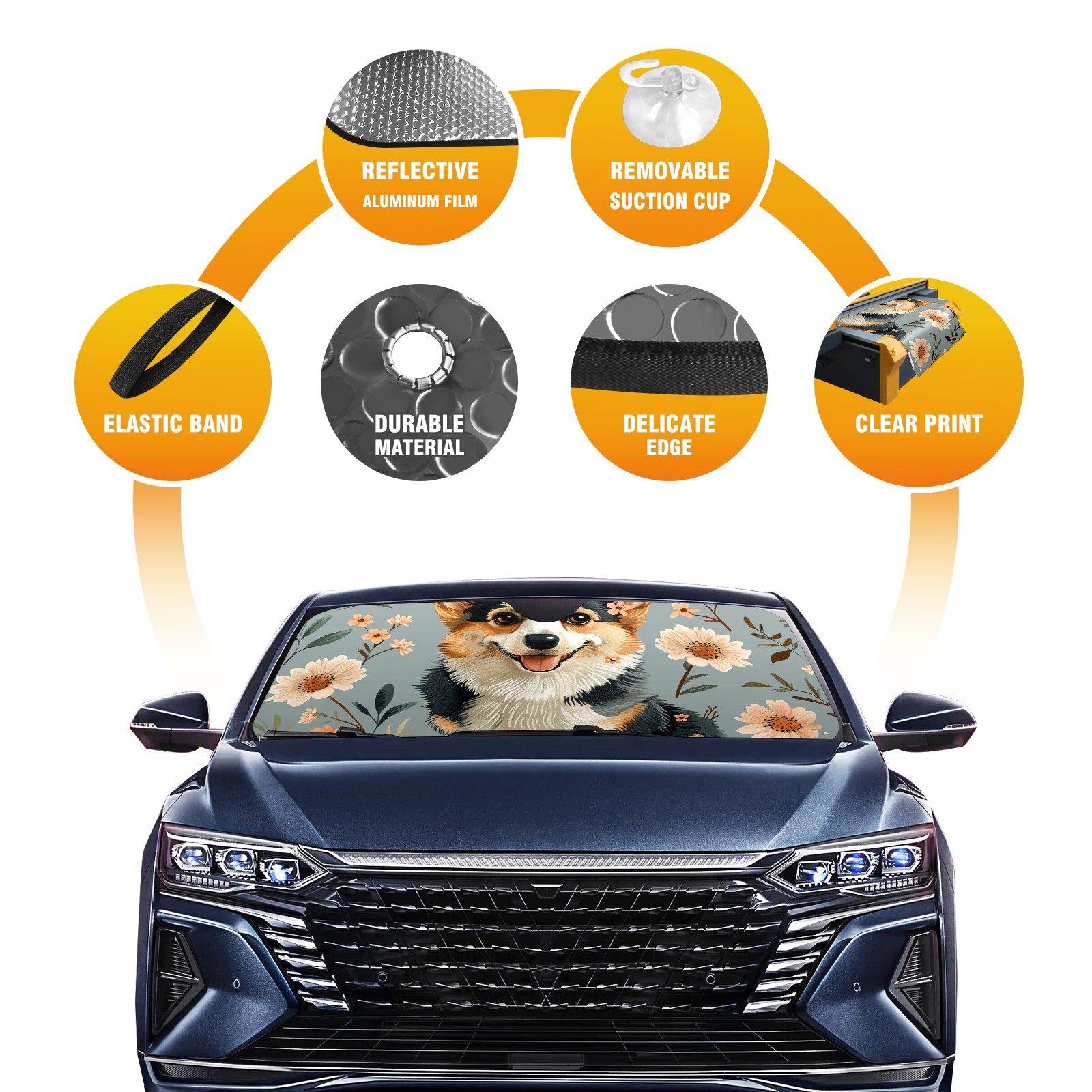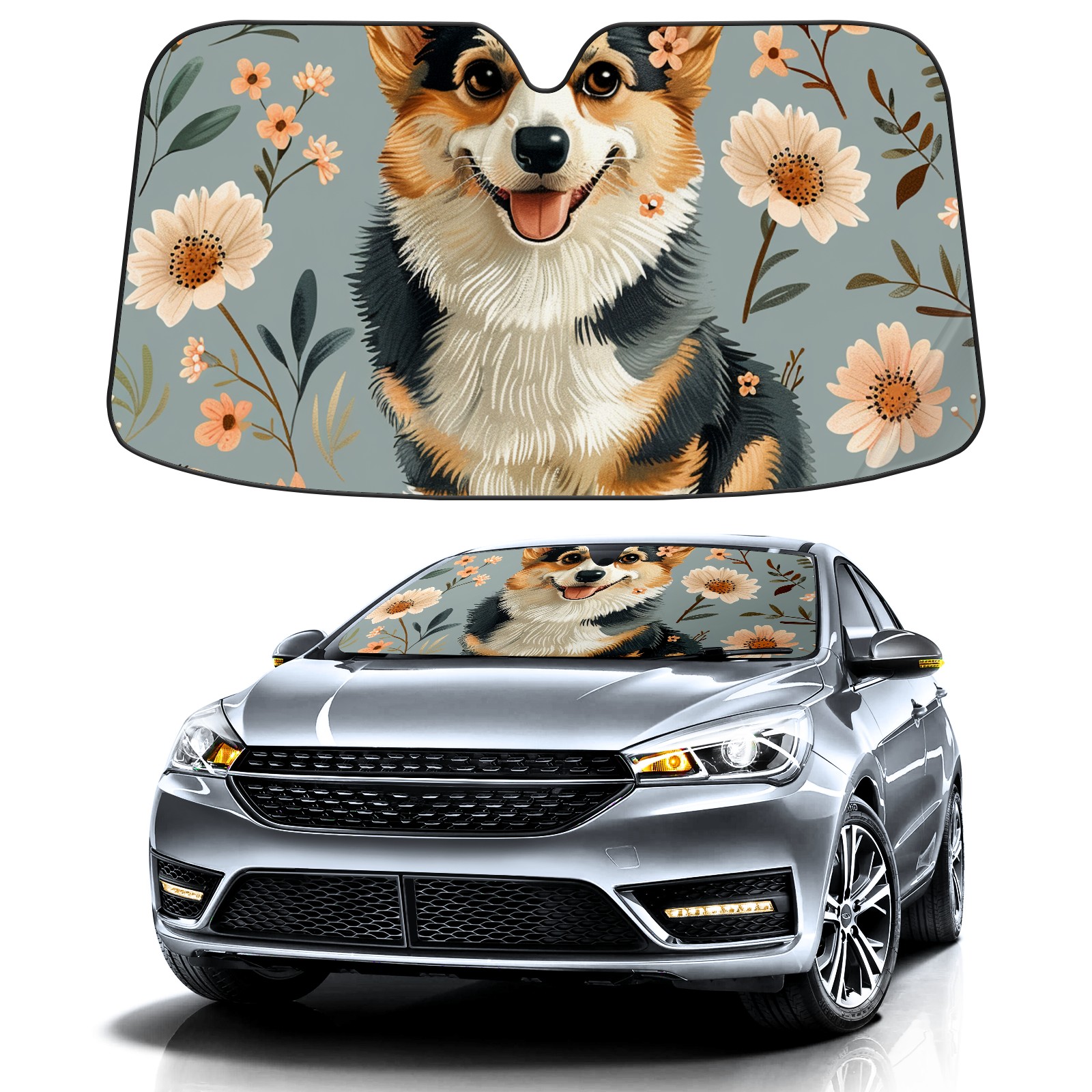 Car Windshield Sun Shade For Front Window A CuteDog (2) Foldable Vehicle Windshield Car Sun Visor Covers Automotive Window Protector Car Camping Privacy Sun Blocker