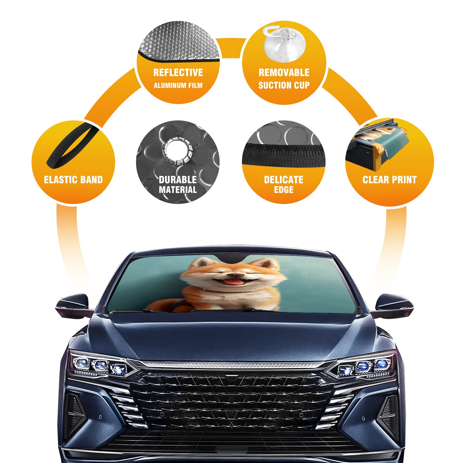 Car Windshield Sun Shade For Front Window A Cute AkitaPuppy Face6 Foldable Vehicle Windshield Car Sun Visor Covers Automotive Window Protector Car Camping Privacy Sun Blocker