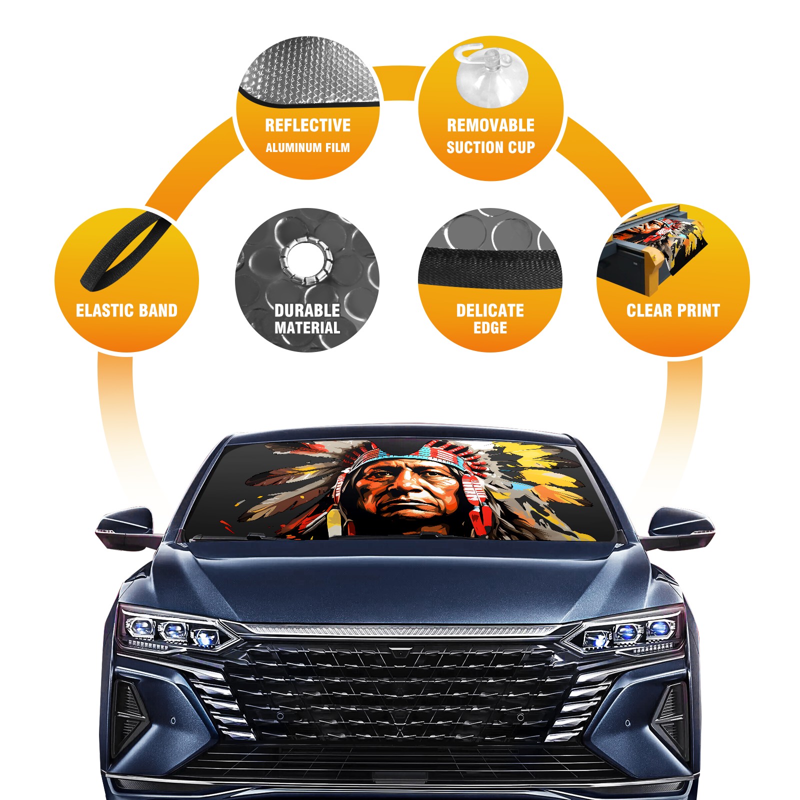 • Diameter /Size 63"L x 33.5"W Made from excellent materials which makes it sturdy and protects the car from the sun. Easy to use and pack. Makes the interior of the car cooler.You can easily stash the sunshade in the storage bag or store long term.It open and closes easy. Also the leather storage bag is durable and easy to put the umbrella back into.This windshield sunshade provides complete coverage and keeps your car interior cool under direct sun. It is easy to open and position under the windshield and around the rear-view mirror. Makes Your Car Easy To Identify, Perfect For Finding Your Car In Crowded Parking Lots And Garages.Great Choice: It Is A Great Gift For Dad, Boyfriend, Brother, Brother And Uncle, Friends, Classmates, Family And So On. Notice: Due To Difference Computer Monitors, The Color Maybe Slightly Different From Picture. As Different Measurement Methods, Measurement Data Will Float Within 2%.I Hope You Understand. If You Have Any Question About The Item Please Do Not Hesitate To Contact Us Immediately And We Will Give You A Satisfactory Reply Within 24 Hours.