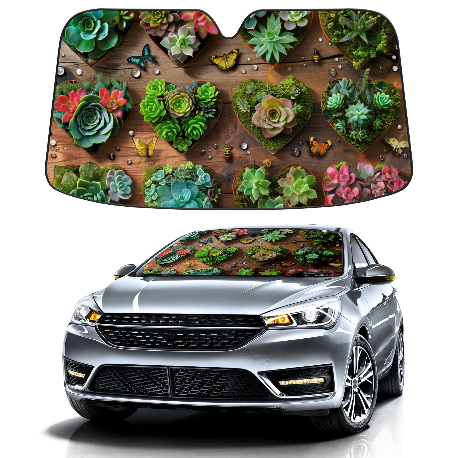 Diameter /Size 63"L x 33.5"W Made from excellent materials which makes it sturdy and protects the car from the sun. Easy to use and pack. Makes the interior of the car cooler.You can easily stash the sunshade in the storage bag or store long term.It open and closes easy. Also the leather storage bag is durable and easy to put the umbrella back into.This windshield sunshade provides complete coverage and keeps your car interior cool under direct sun. It is easy to open and position under the windshield and around the rear-view mirror. Makes Your Car Easy To Identify, Perfect For Finding Your Car In Crowded Parking Lots And Garages.Great Choice: It Is A Great Gift For Dad, Boyfriend, Brother, Brother And Uncle, Friends, Classmates, Family And So On. Notice: Due To Difference Computer Monitors, The Color Maybe Slightly Different From Picture. As Different Measurement Methods, Measurement Data Will Float Within 2%.I Hope You Understand. If You Have Any Question About The Item Please Do Not Hesitate To Contact Us Immediately And We Will Give You A Satisfactory Reply Within 24 Hours.