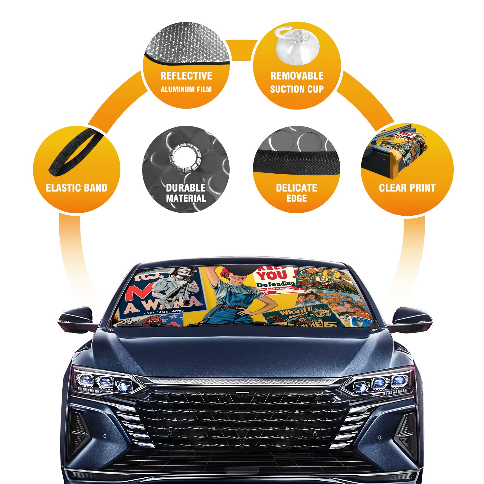 Car Windshield Sun Shade For Front Window Poster Foldable Vehicle Windshield Car Sun Visor Covers Automotive Window Protector Car Camping Privacy Sun Blocker